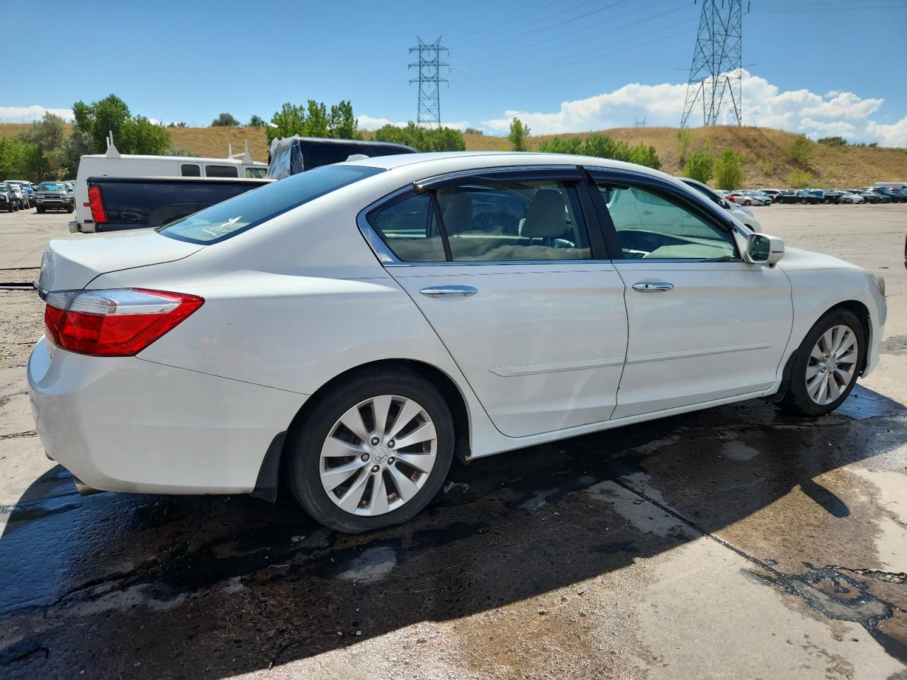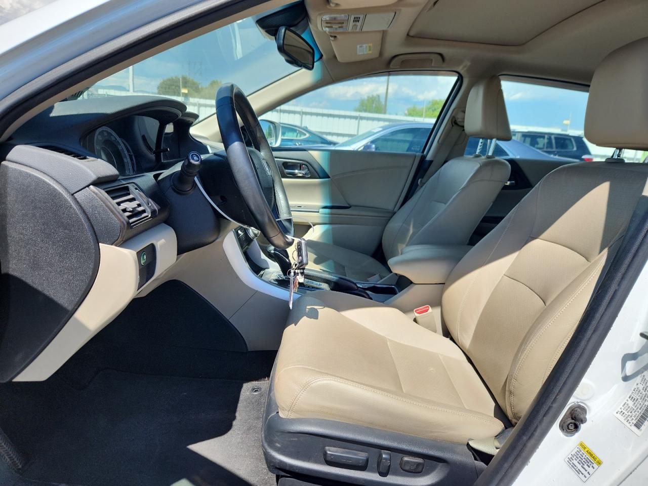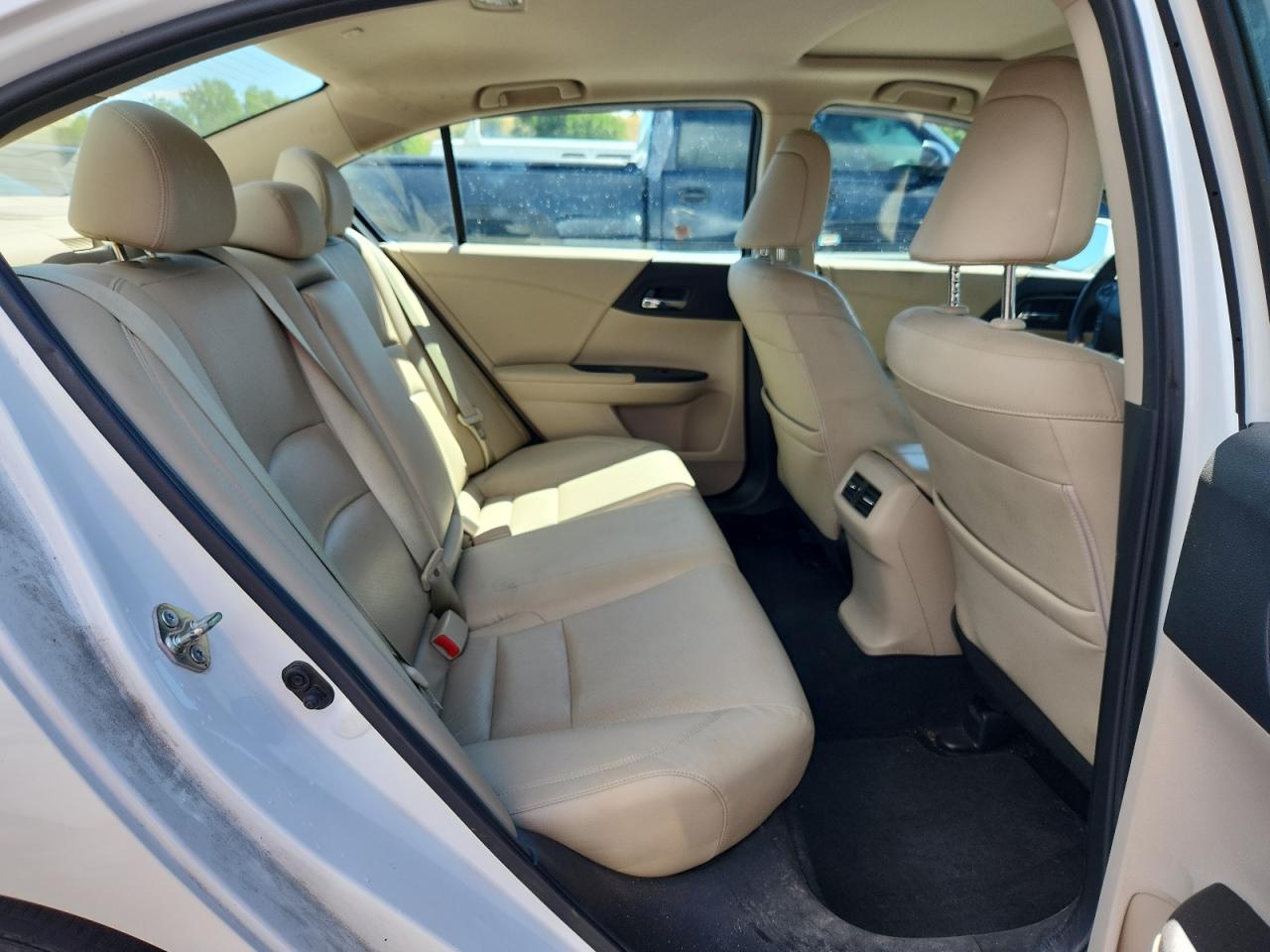FairThis is a 2015 HONDA ACCORD EXL, white in color, with a 'Run & Drive Verified' start code. The primary damage is to the UNDERCARRIAGE, and the secondary damage is to the FRONT END. The vehicle's condition is noted as drivable, but the exterior shows signs of moderate damage. The interior appears to be in good condition. The wheels, lights, and glasses seem to be intact. The car has a beige interior. It appears that the front bumper, and undercarriage may need repairs or replacement.