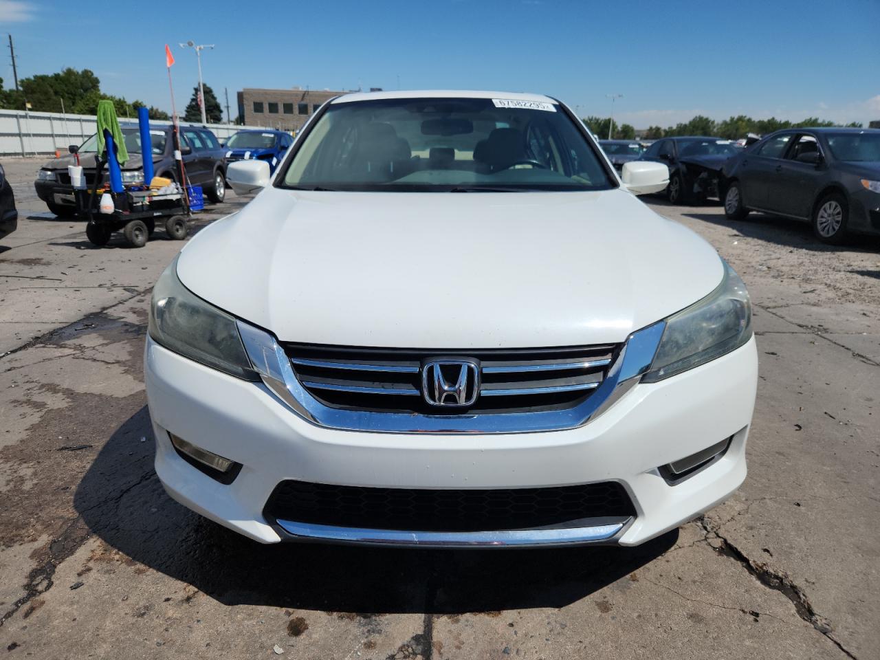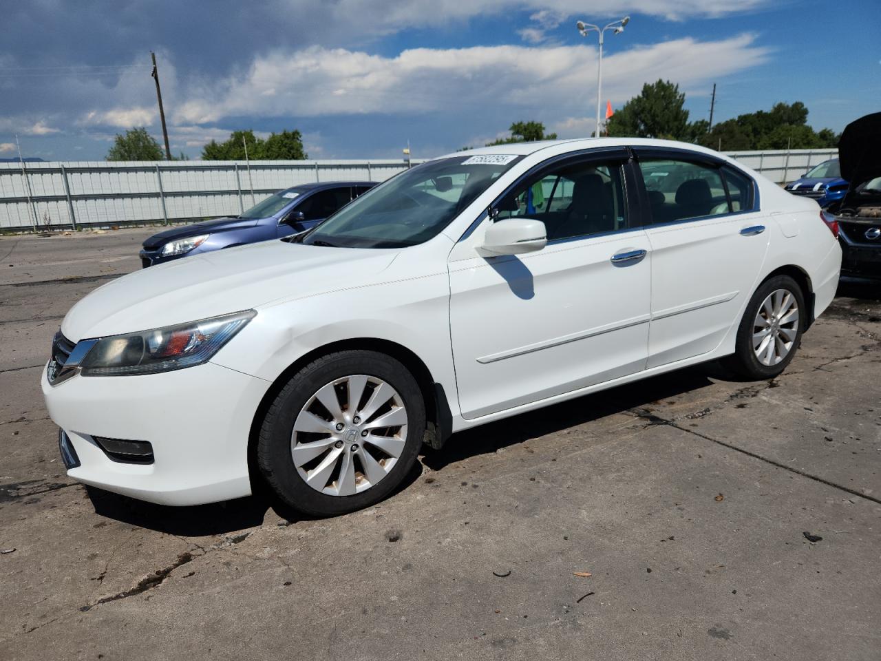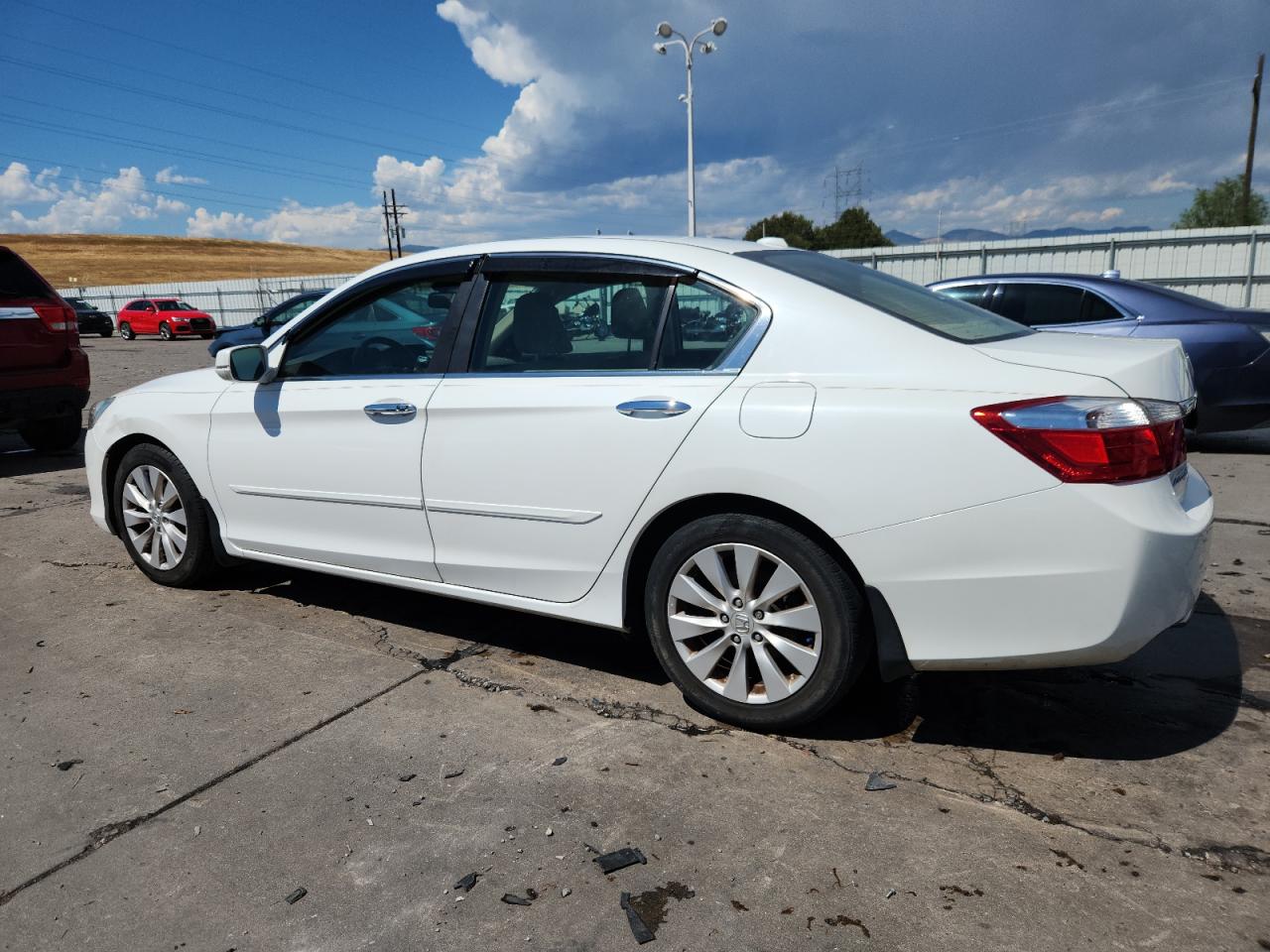 FairThis is a 2015 HONDA ACCORD EXL, white in color, with a 'Run & Drive Verified' start code. The primary damage is to the UNDERCARRIAGE, and the secondary damage is to the FRONT END. The vehicle's condition is noted as drivable, but the exterior shows signs of moderate damage. The interior appears to be in good condition. The wheels, lights, and glasses seem to be intact. The car has a beige interior. It appears that the front bumper, and undercarriage may need repairs or replacement.