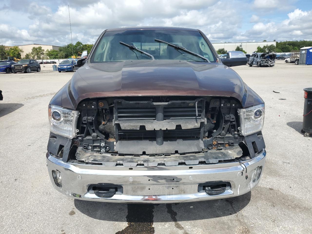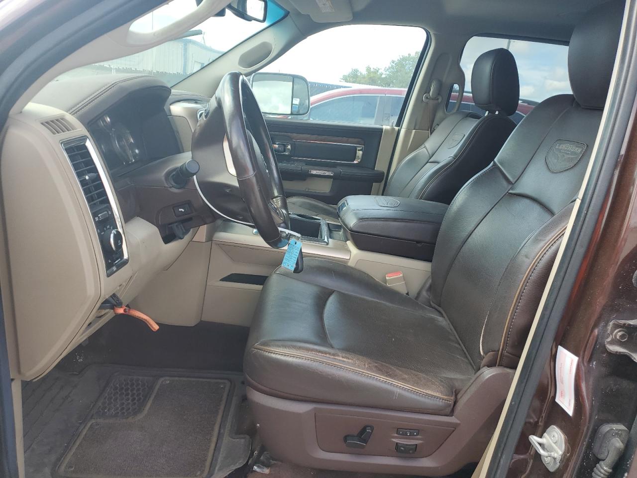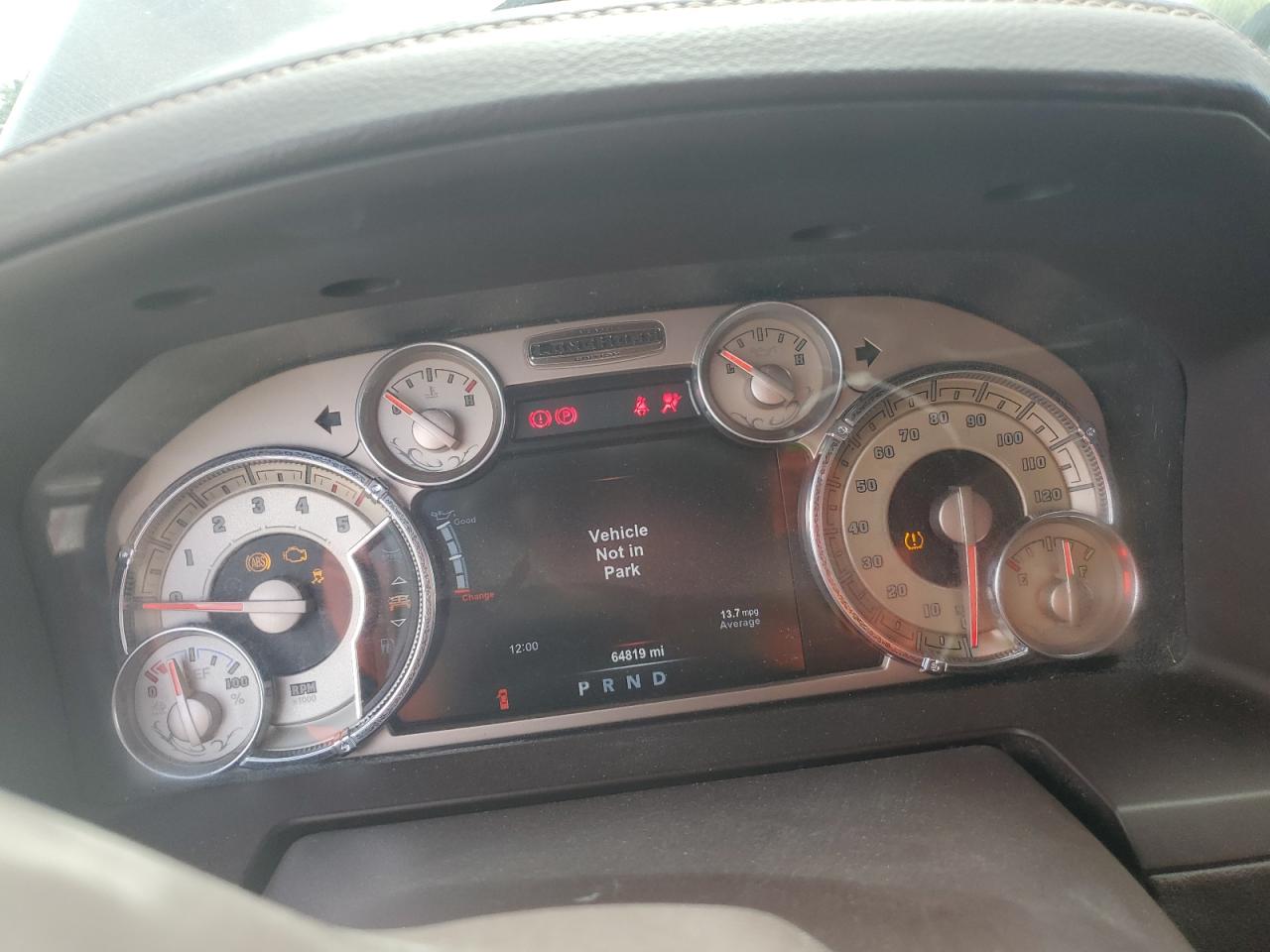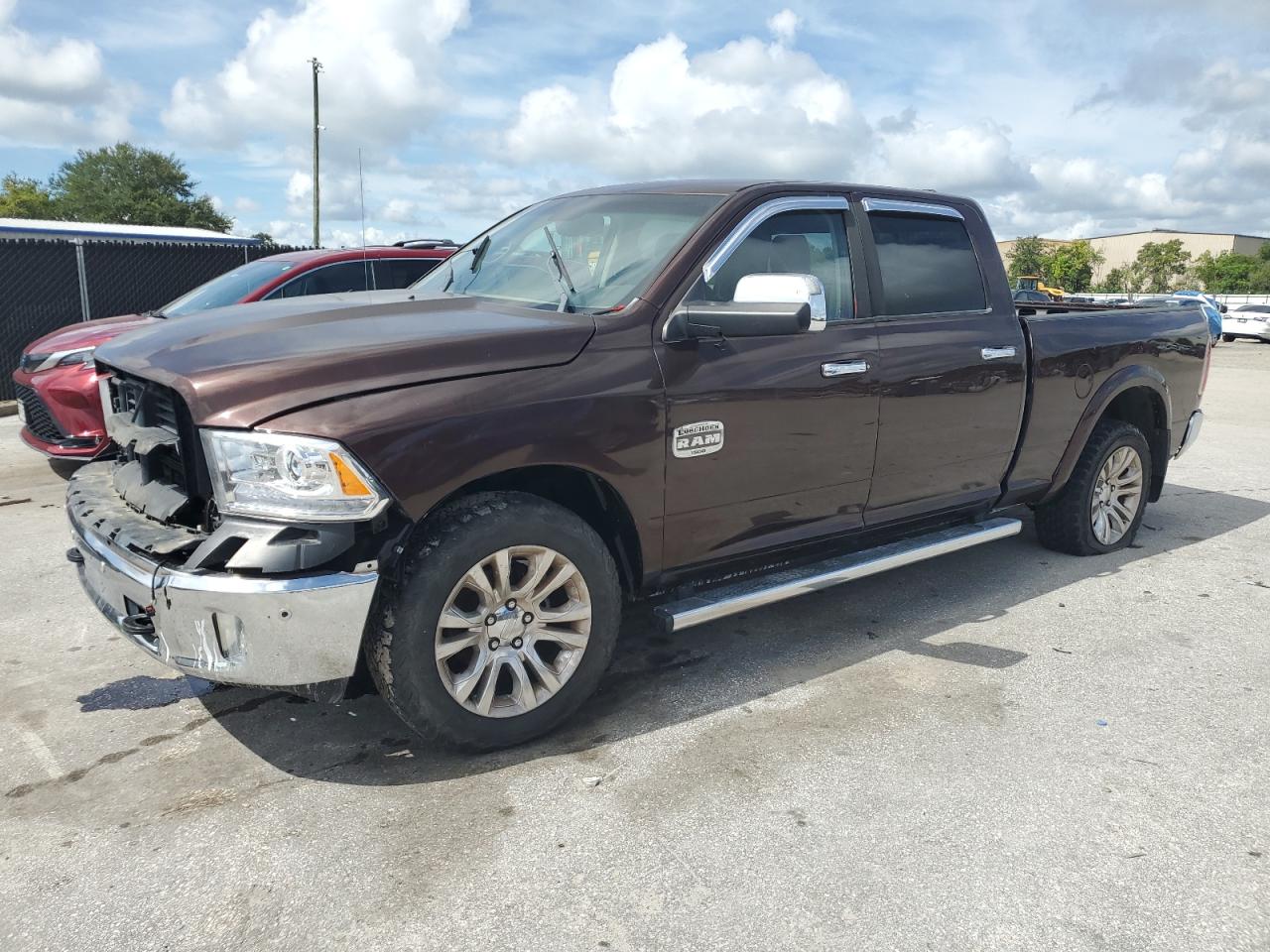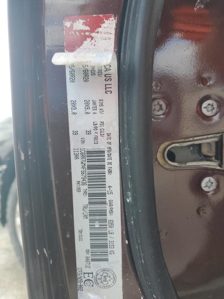 Fair2015 RAM 1500 LONGH with major front end damage. The vehicle is brown. The interior shows some wear and tear consistent with age and mileage. The vehicle's body panels appear to be damaged, and the exterior condition is fair. The car is likely drivable but requires considerable repairs.