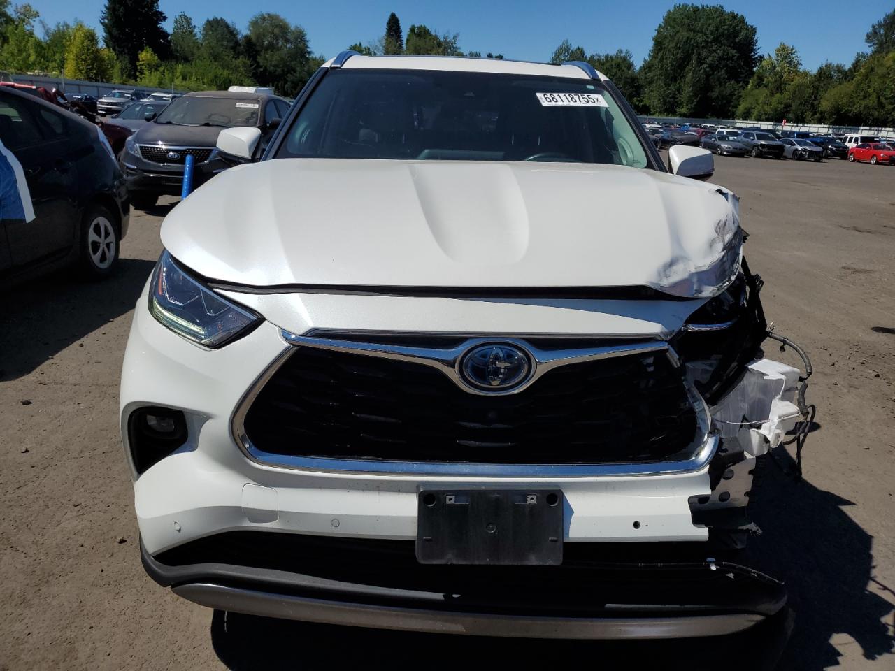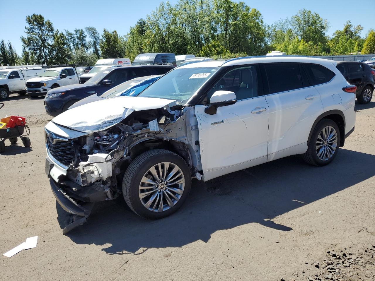 FairThe 2021 Toyota Highlander is a white SUV with significant front-end and side damage. The primary damage is to the front end, with secondary damage along the side. The car is listed as Run & Drive Verified. The wheels appear to be intact. Based on the images, the lights and glasses seem to be damaged. The interior condition appears to be in relatively good shape, with visible wear and tear. The airbag may be deployed.