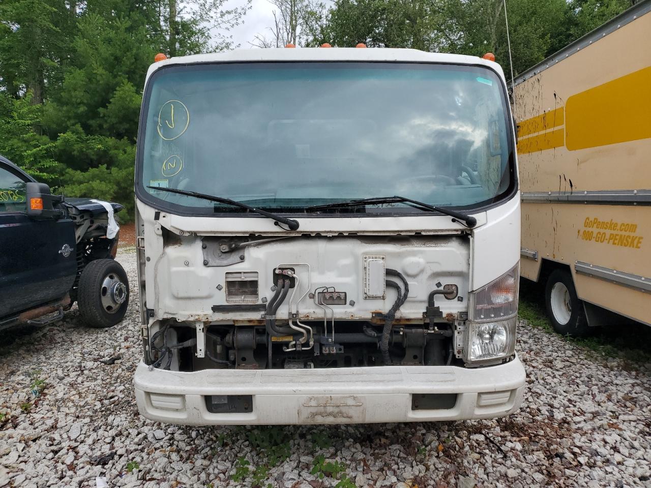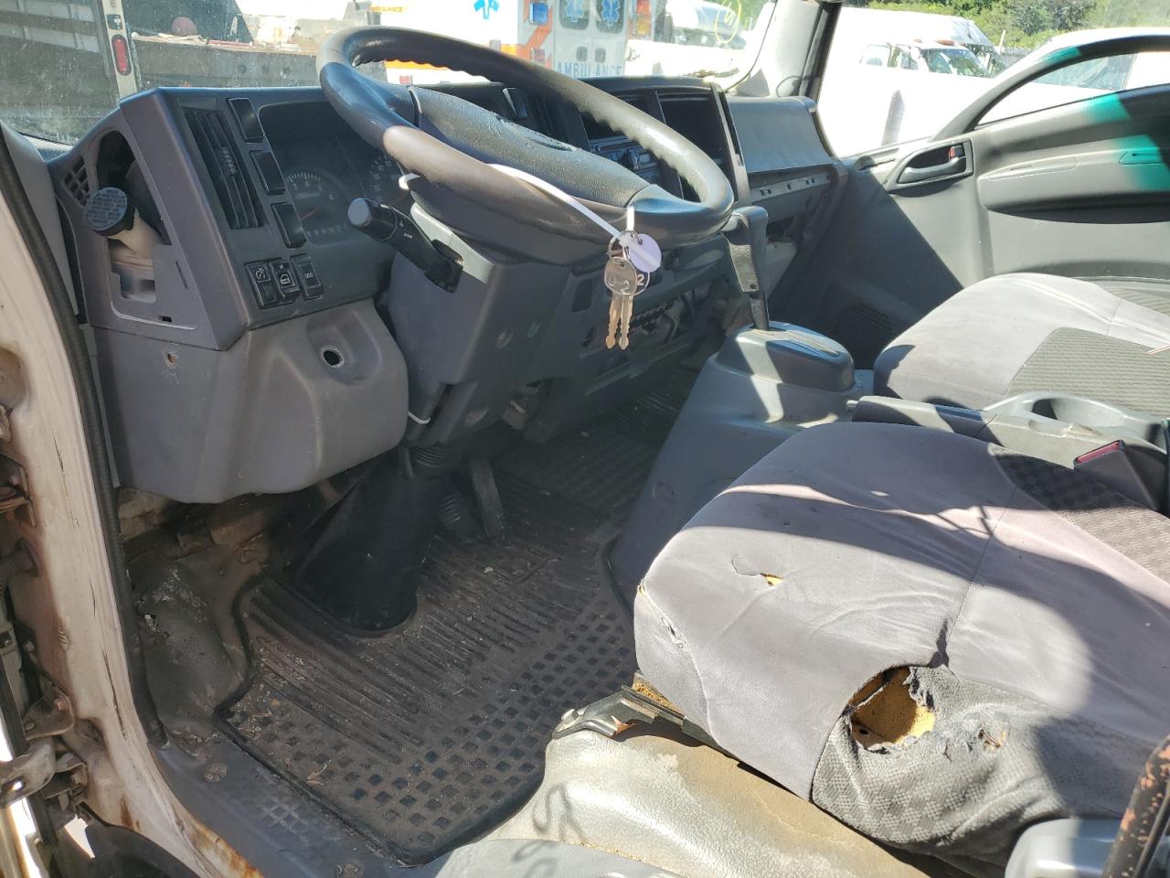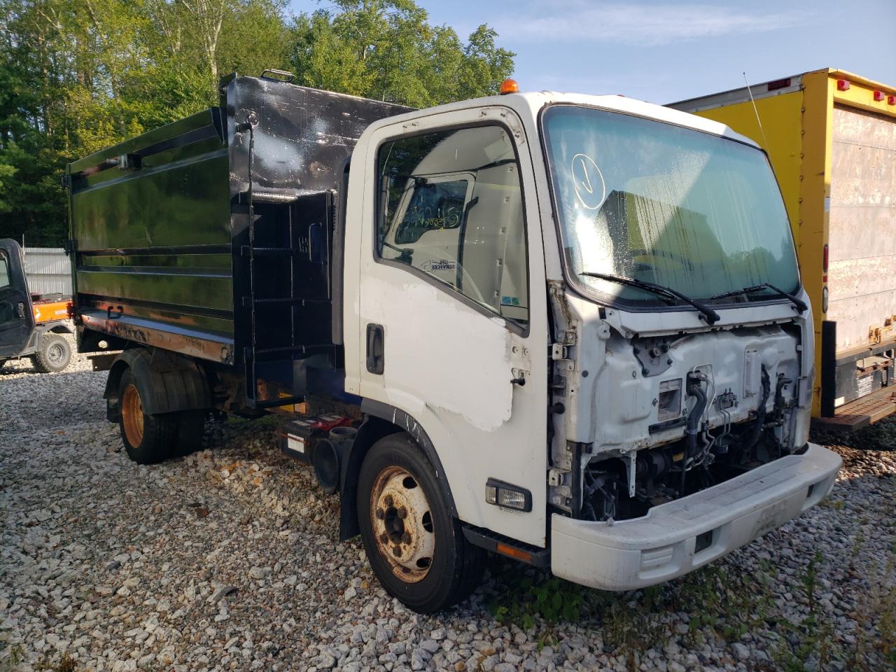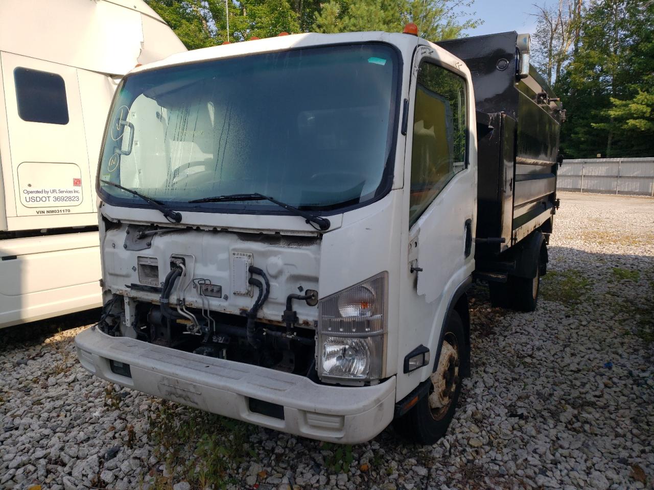 FairThe 2012 ISUZU NPR HD dump truck is heavily damaged, appearing to be stripped of essential parts like the front grille, headlights, and possibly more. The vehicle's exterior exhibits significant damage, particularly on the body panels. The interior shows wear and tear, with potential damage to the seats and other components. The truck appears to be drivable, but the damage suggests it requires considerable repair.