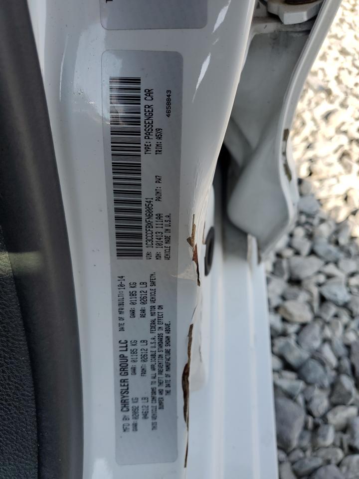FairThis white 2015 Chrysler 200 LX shows significant body damage primarily on the sides. The side panels exhibit major dents and likely require replacement. The interior appears to be in good condition with visible wear and tear. The vehicle starts and runs, indicated by the 'Run & Drive Verified' status.