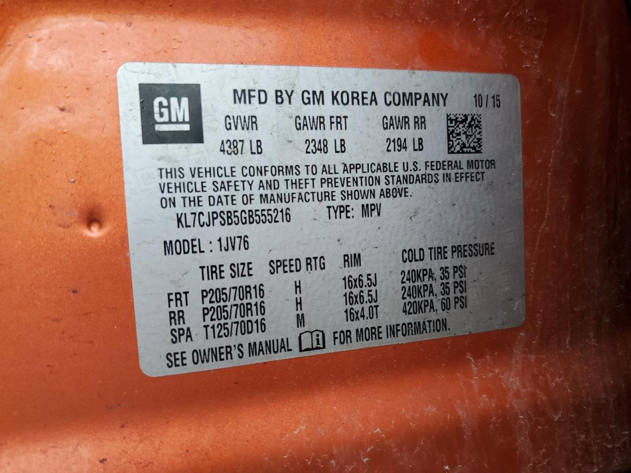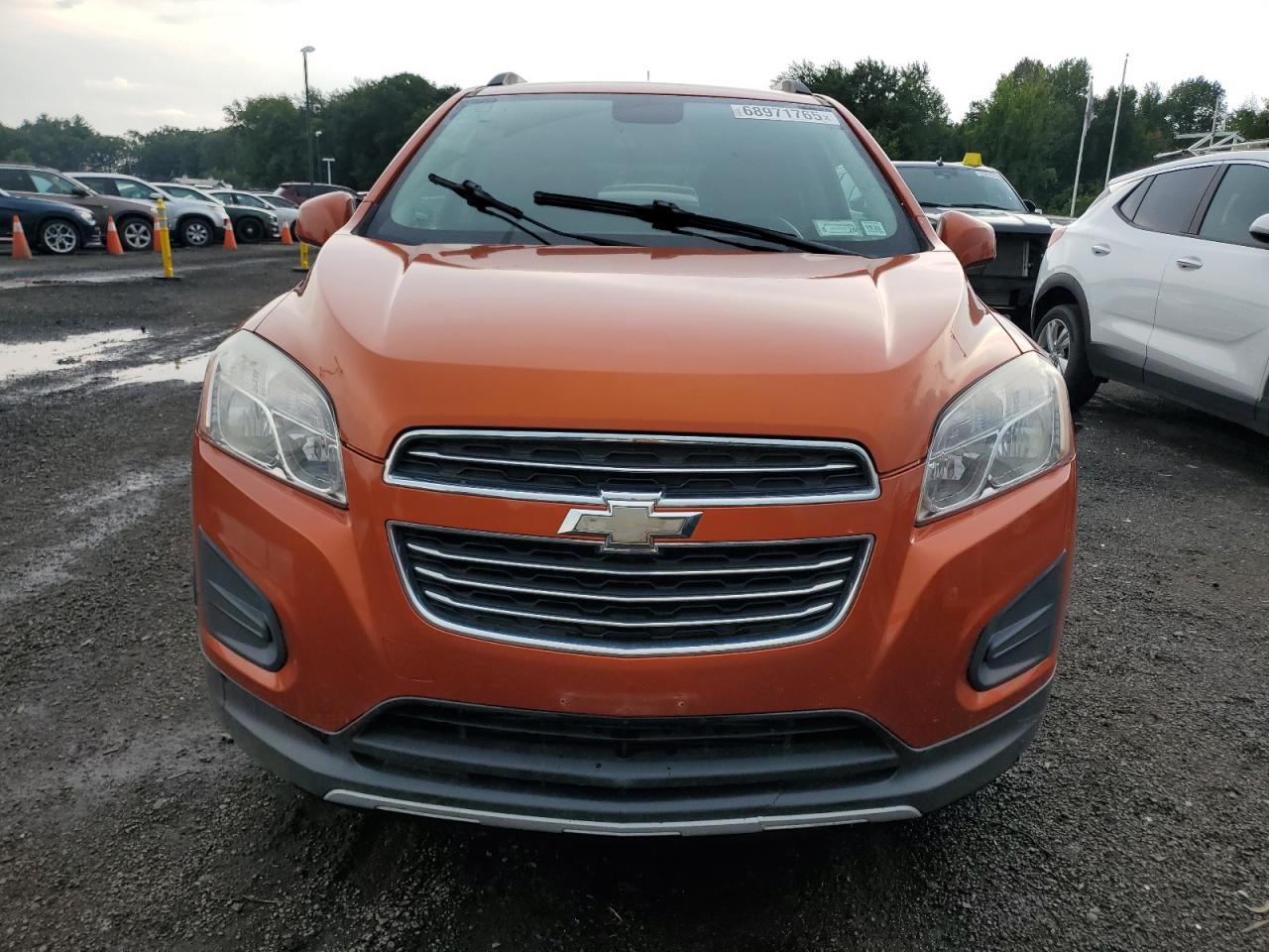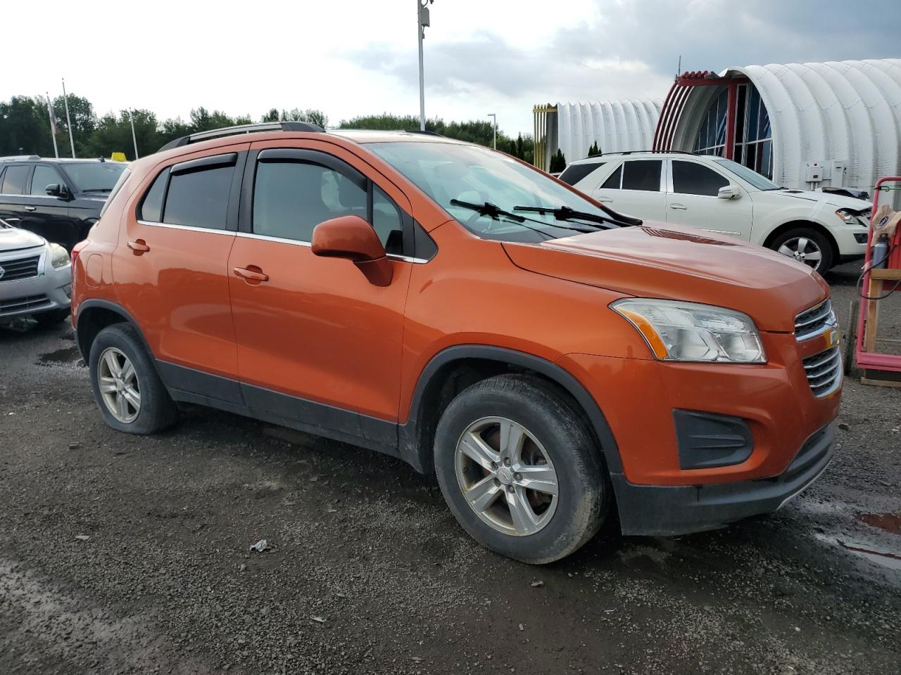 GoodThe CHEVROLET TRAX 1LT 2016, an orange compact SUV, presents with cosmetic damage, primarily minor dents and scratches, indicating a 'Body' type Vehicle Damage Category. The exterior shows moderate wear, the interior reflects some damage, and its overall condition is rated as 'Fair'. The vehicle appears drivable, with possible need for repair to some body components. The wheels and glasses look fine. The car's damage primarily focuses on its exterior panels.
