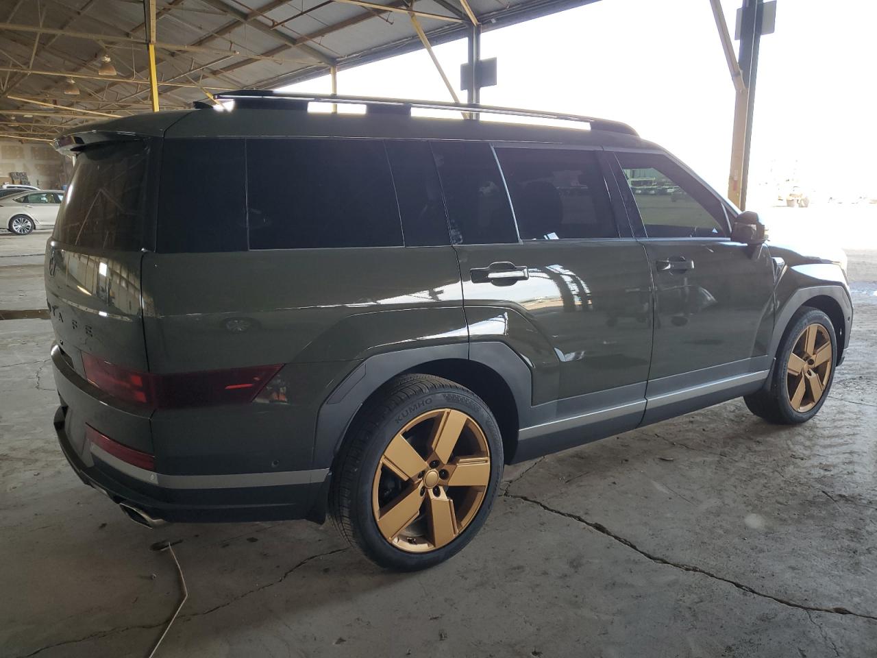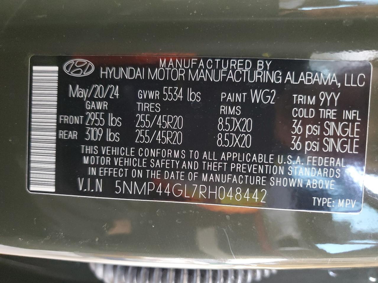 FairThe 2024 HYUNDAI SANTA FE L is a green SUV with visible body damage on the side. The primary damage is on the side, while there is no secondary damage. The vehicle is drivable and has a Run & Drive Verified start code. The wheels appear to be in good condition. The interior shows minimal wear and tear.