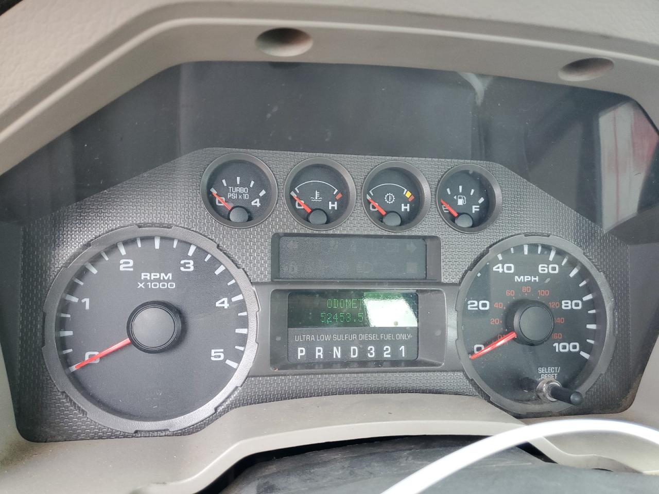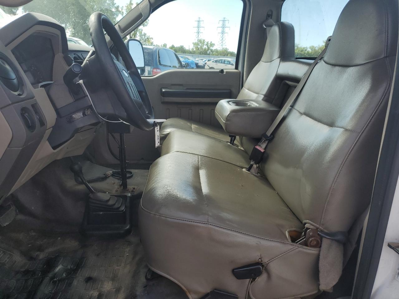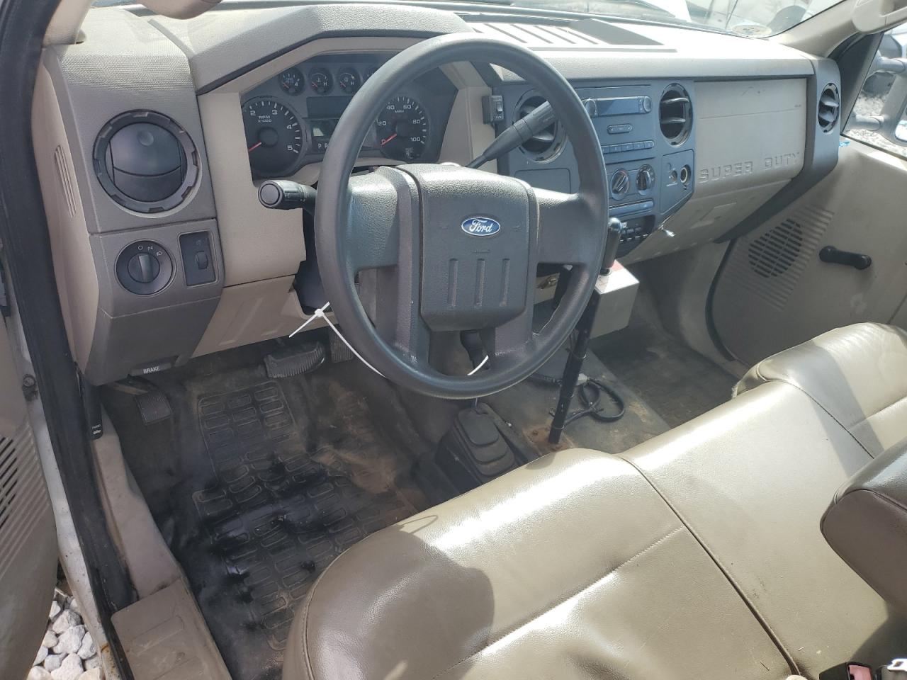 The FORD F350 SRW SUPER DUTY has significant undercarriage and mechanical damage. The front end shows damage. The interior has moderate wear and tear. The vehicle is not drivable and requires considerable repair.