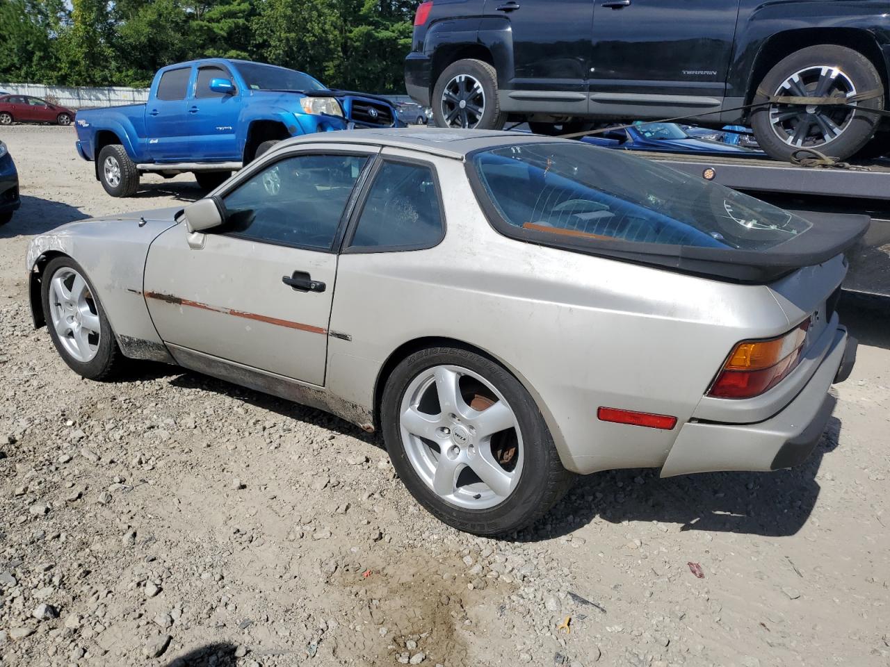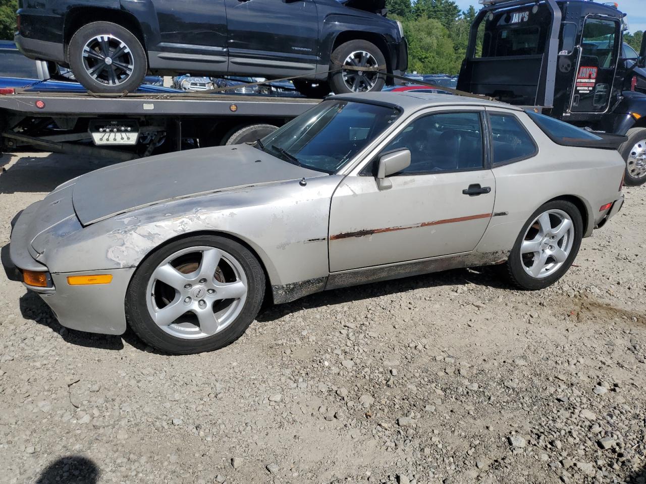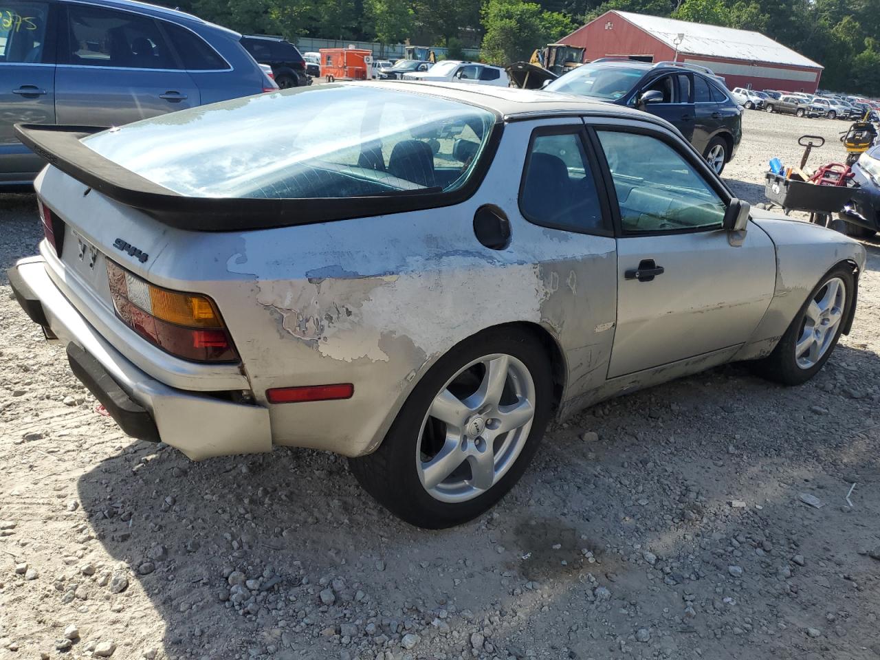 FairThe 1985 Porsche 944 is silver, the primary damage is mechanical. This coupe shows signs of wear and tear, indicating its age and use. The vehicle exhibits body panel damage. The interior shows moderate wear, with visible damage. The wheels and lights appear to be intact. The glass components seem to be in decent condition. Overall, the car requires considerable repair and is not drivable.