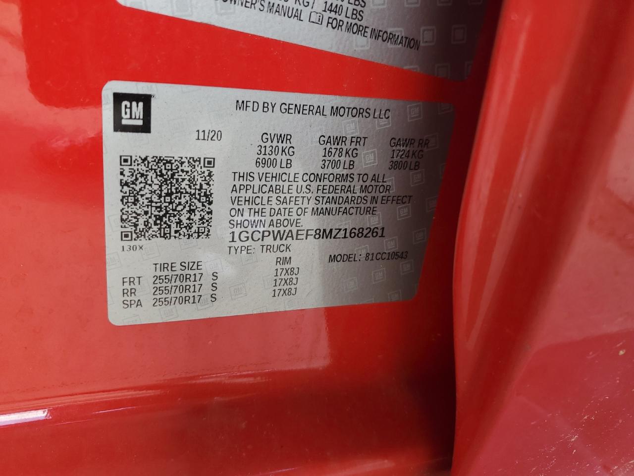 FairThis is a red 2021 Chevrolet Silverado. The primary damage is to the front end, and secondary damage is to the side. The car is drivable with a Run & Drive Verified status.