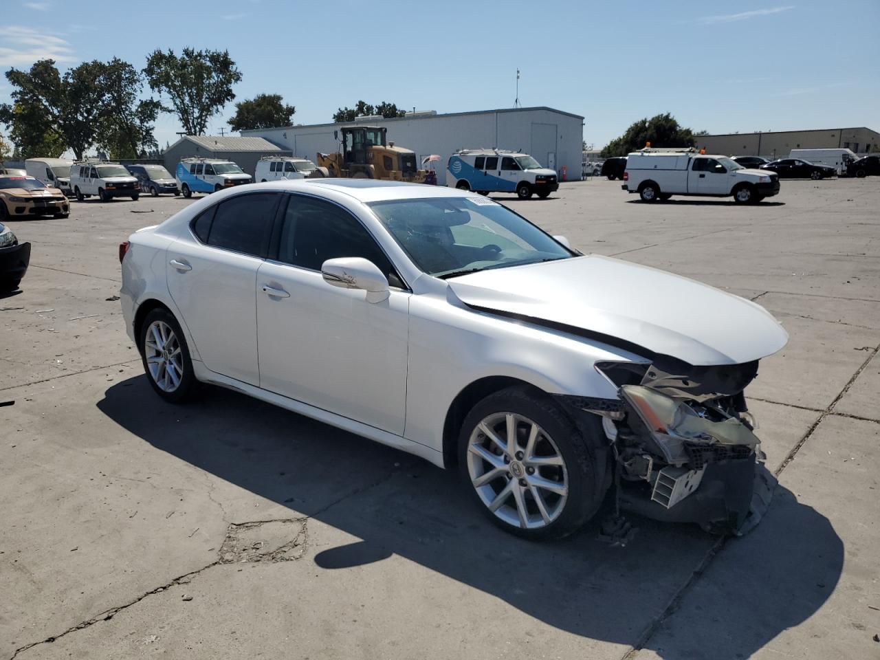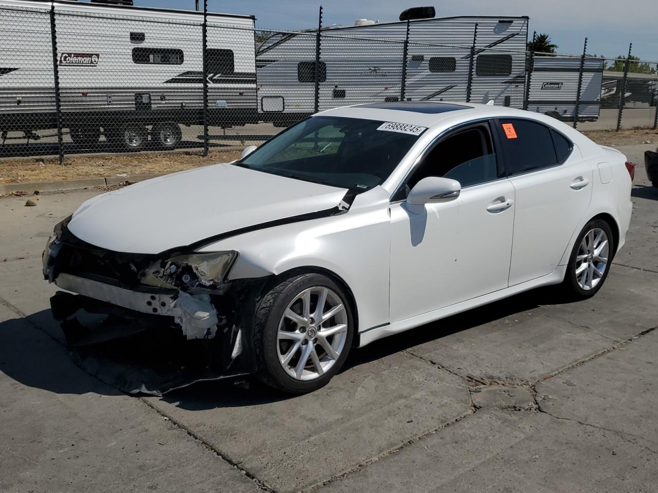 FairThe white 2011 Lexus IS 250 shows significant damage. The front end is heavily damaged, with the bumper, grill, and likely other components needing replacement. The rear end also exhibits damage. The interior displays deployed airbags and signs of impact. The car's overall condition is poor, requiring substantial repairs.