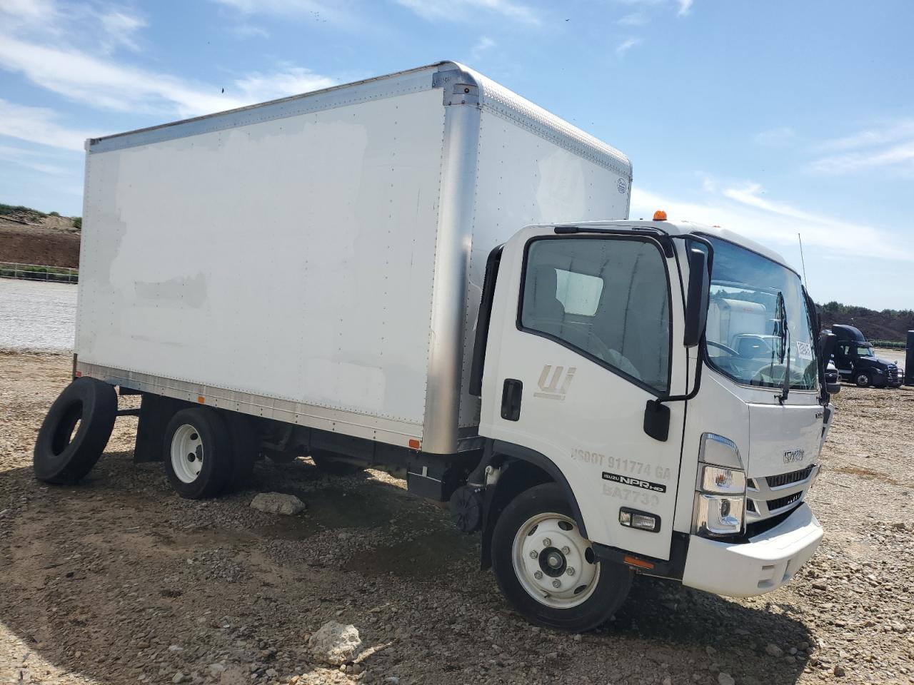 FairThe 2023 ISUZU NPR HD presents with front-end and side damage. The body panels show signs of impact. The color is white, and the vehicle's start code is DEFAULT.