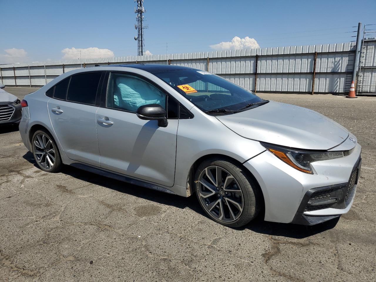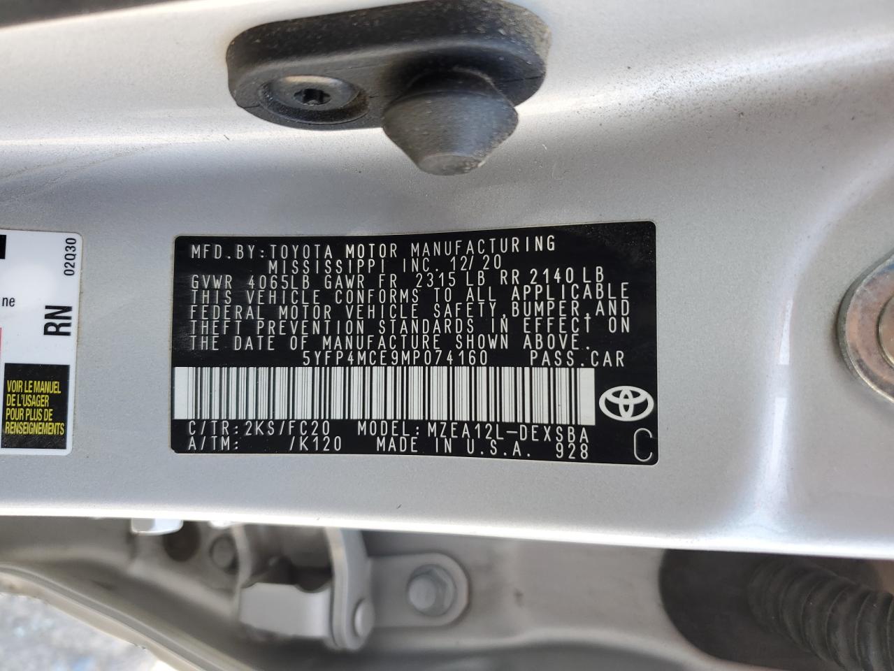 FairThis is a silver 2021 TOYOTA COROLLA SE. The car has sustained significant damage to the front end and side, indicating a collision. The vehicle starts.