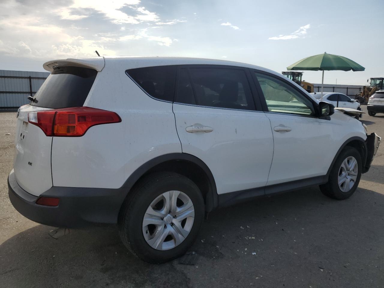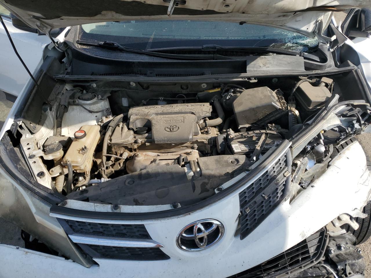 FairThe 2015 Toyota RAV4 LE is a white SUV with significant front-end and side damage. The front end shows considerable impact, with visible damage to the hood, bumper, and front quarter panel. The side also has damage, indicating a collision. The wheels appear to be intact, but the vehicle's overall condition suggests substantial repairs are needed. The interior shows signs of wear and potential airbag deployment, affecting the dashboard and steering wheel. The odometer reads 206713 miles.