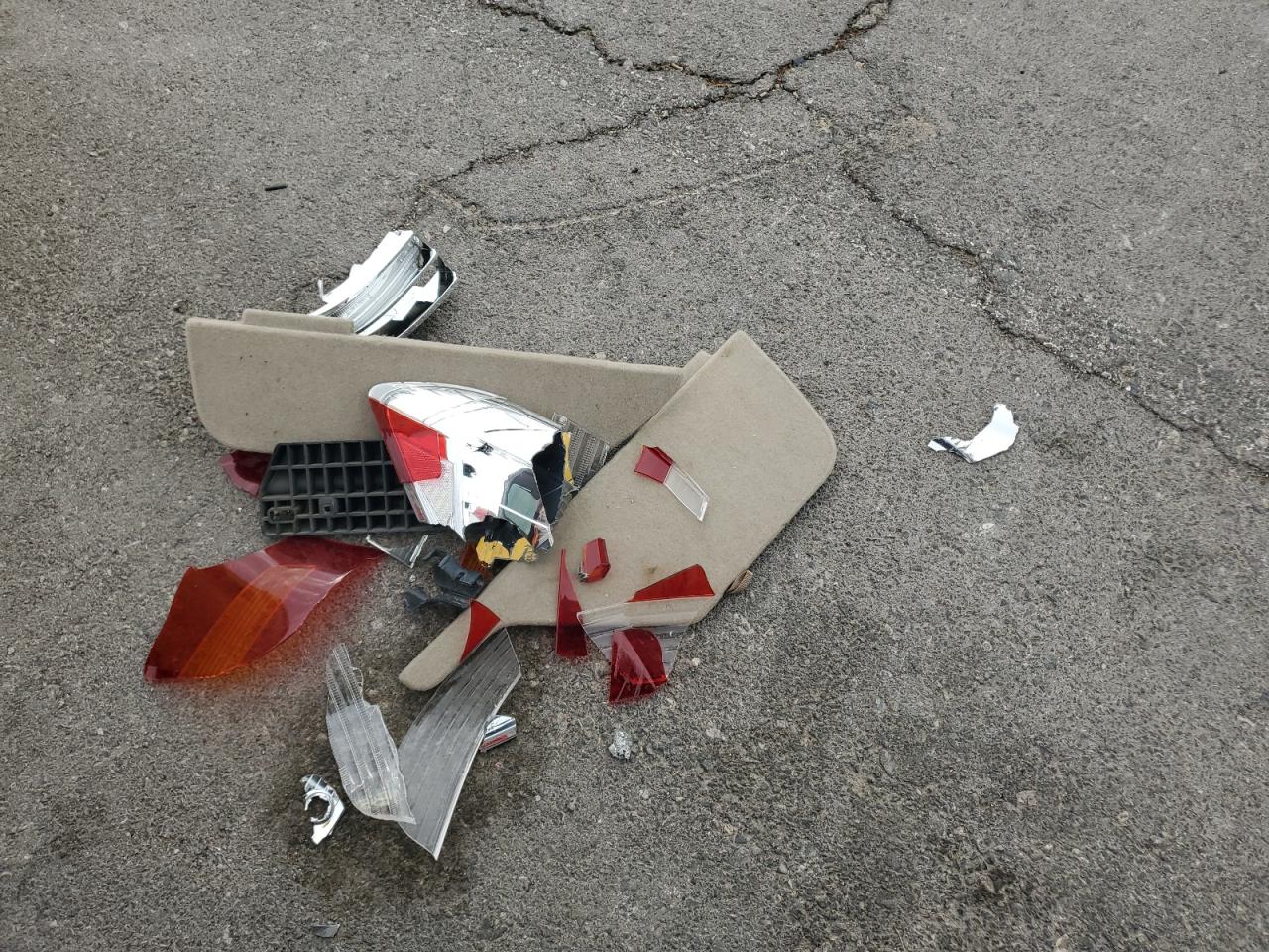 Rear-end damage, body panel damage, possible undercarriage damage, and paint imperfections. Moderate interior wear.