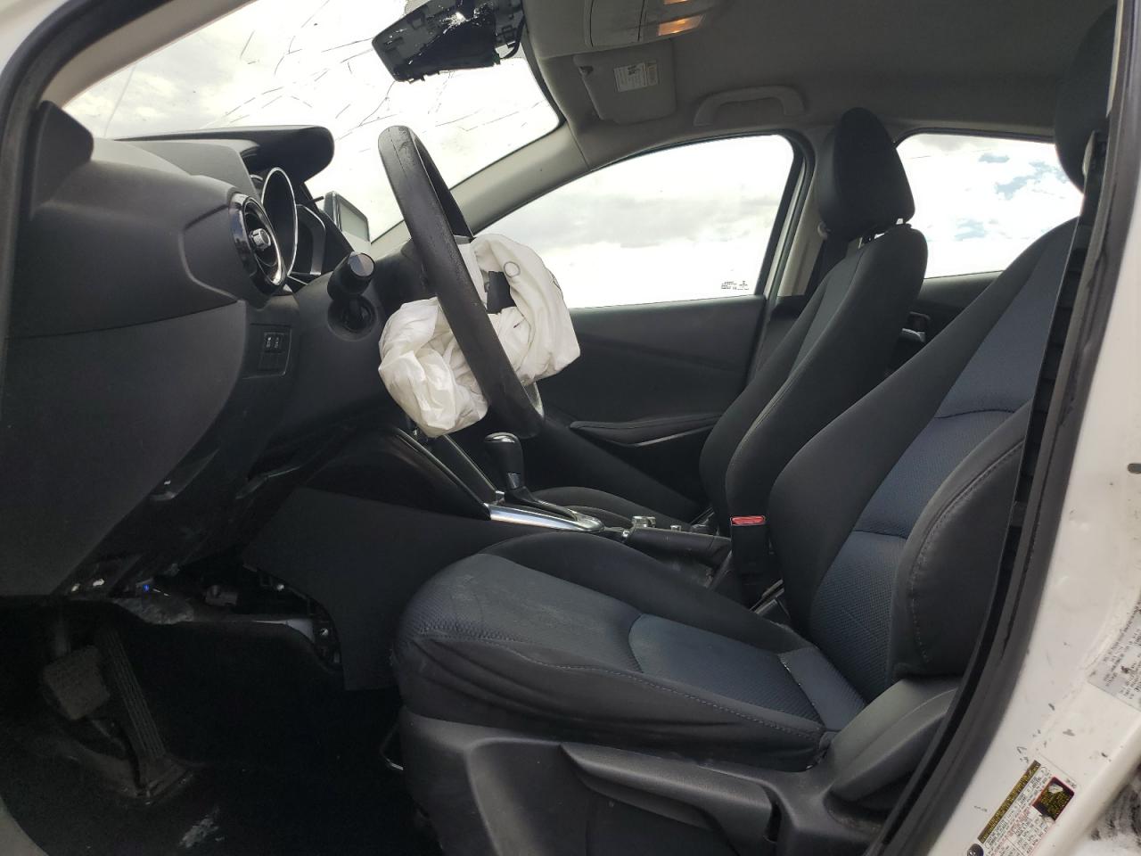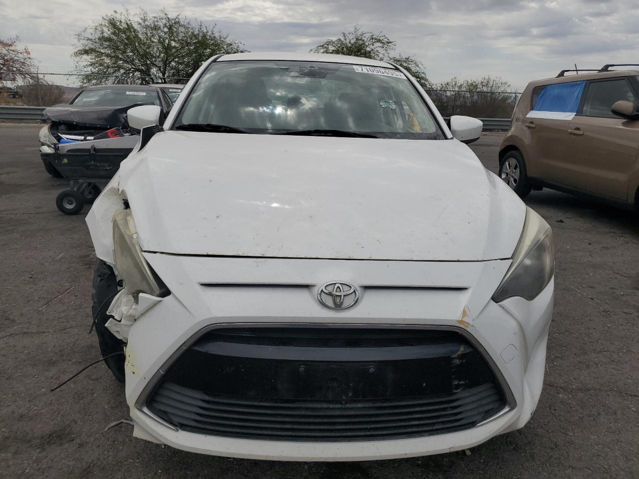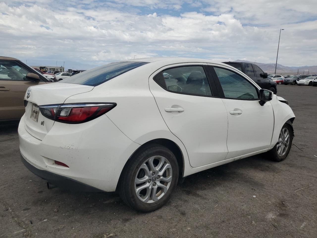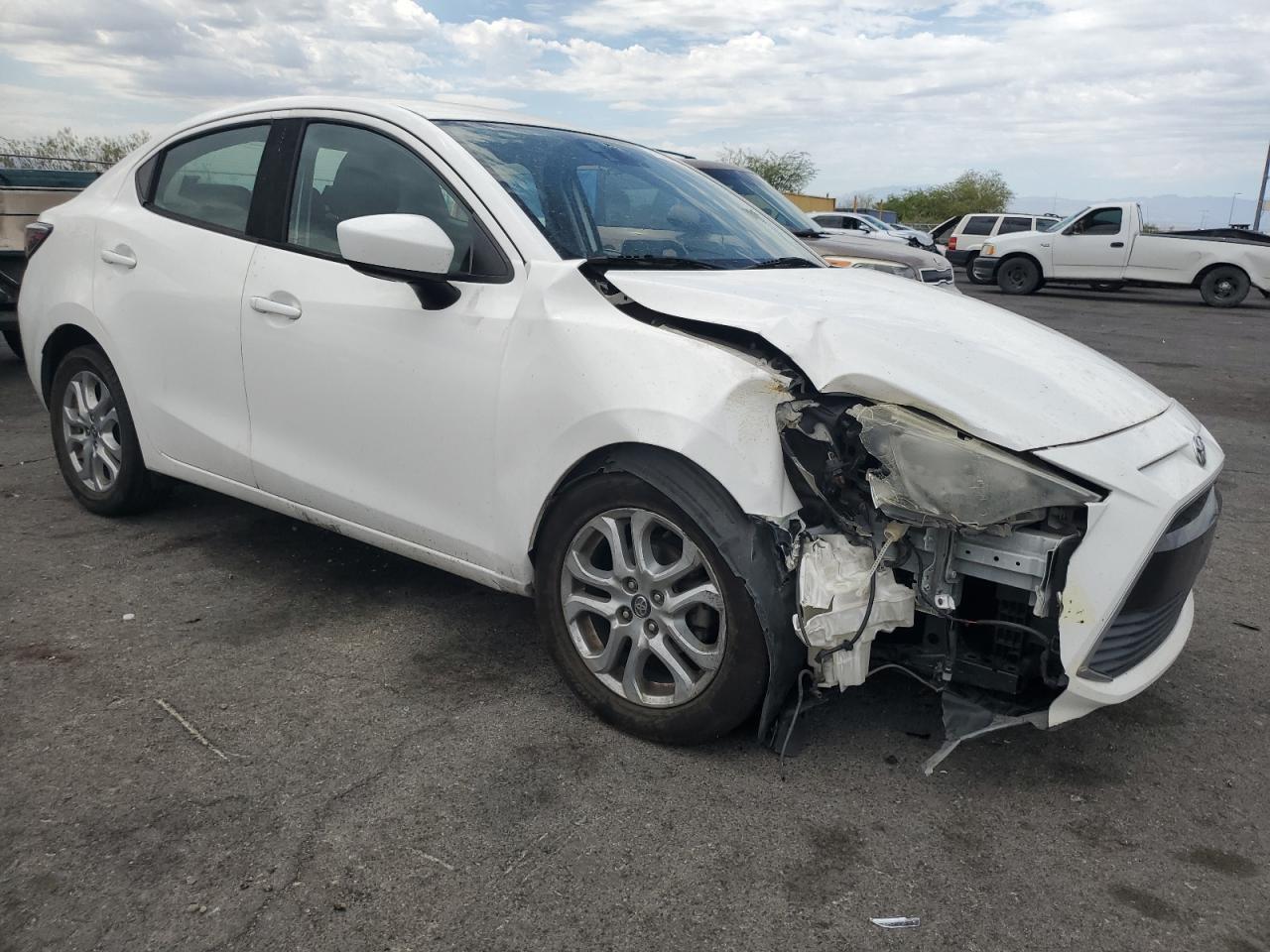 FairThe 2017 Toyota Yaris iA is white and has sustained significant front-end damage, indicating a collision. The front of the car shows extensive damage. The airbags have deployed, suggesting a substantial impact. The interior also shows damage. This vehicle is likely not drivable in its current state.