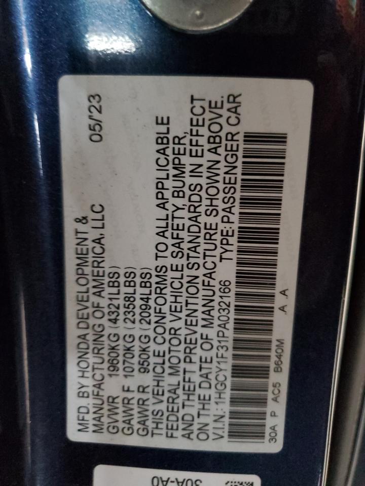 PoorThe 2023 Honda Accord EX is a blue sedan, showing significant front-end damage. The vehicle's front is severely damaged, including the bumper, hood, and front panels. Airbags have deployed inside. The wheels appear to be intact, but the front lights and glasses are damaged or missing. The interior shows signs of airbag deployment and potential damage. Vehicle Starts