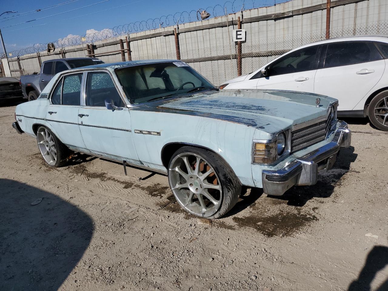 FairThis 1978 Buick Skylark shows signs of wear and tear, with a faded blue exterior and significant cosmetic and interior issues. Mechanical issues are present as well. The wheels have been replaced. The interior is showing damage. The vehicle seems to have been in a junkyard.