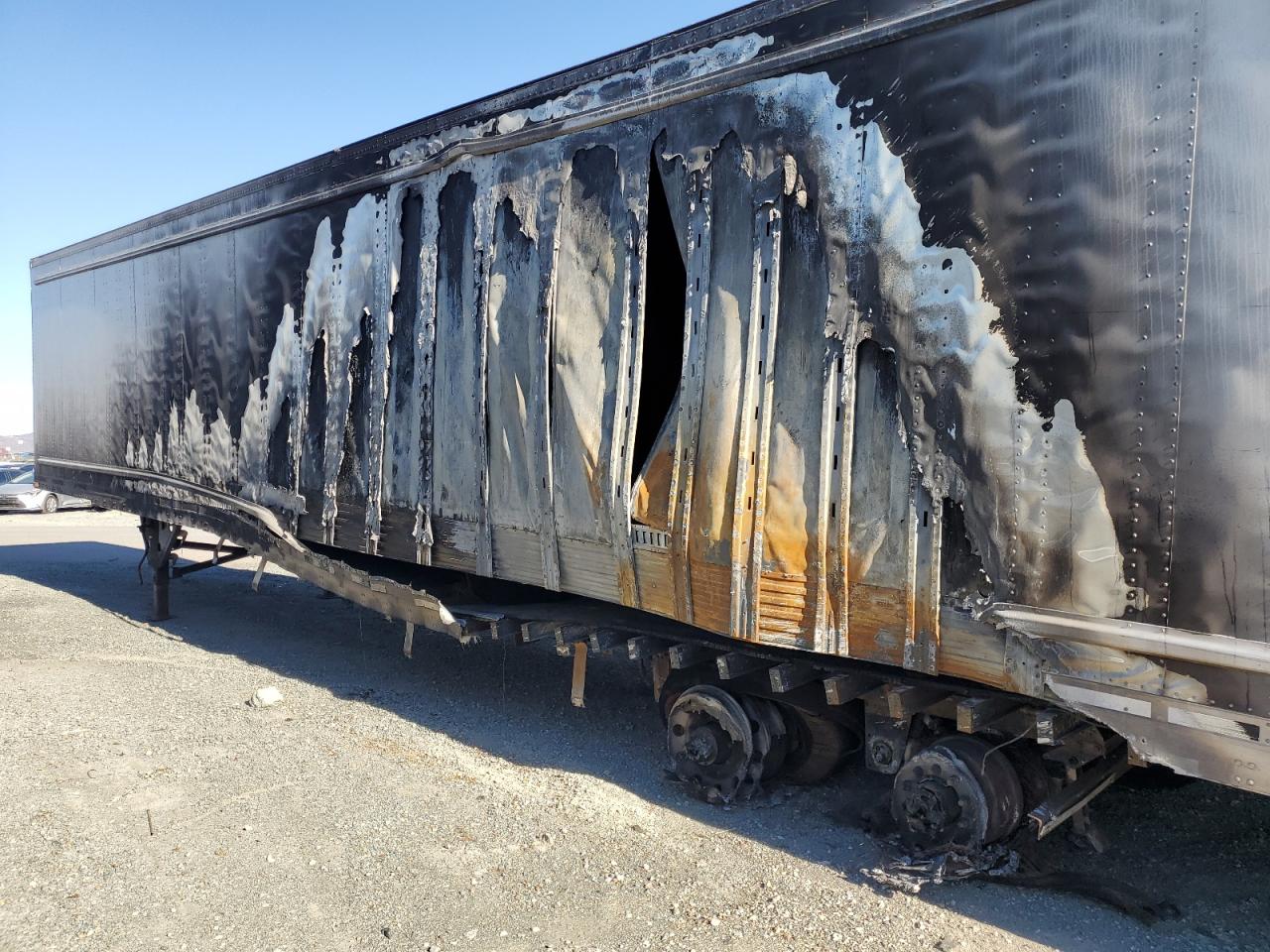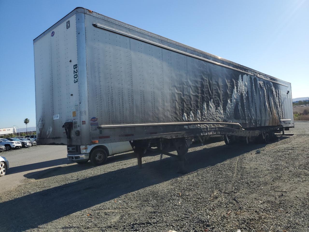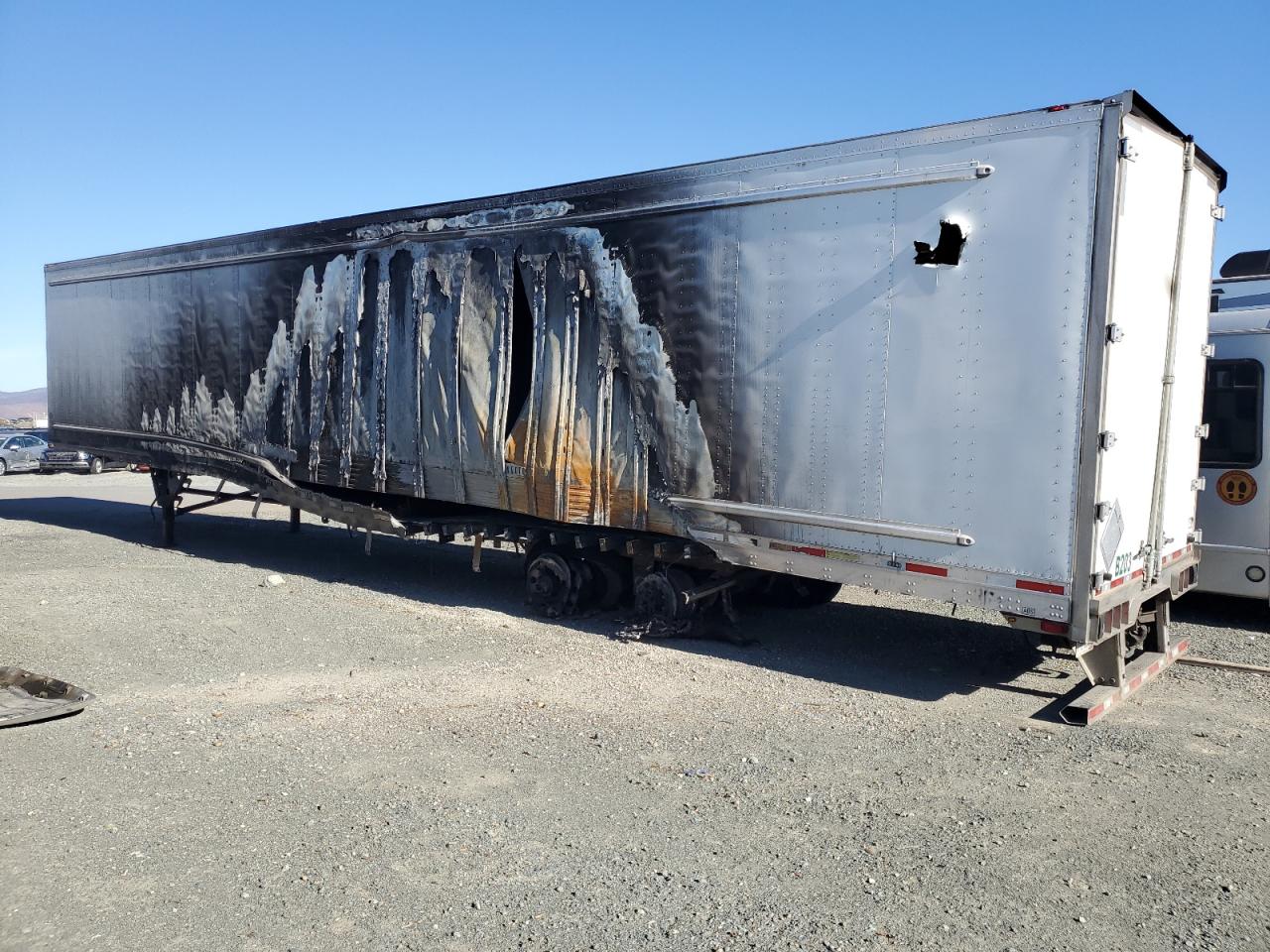 PoorThe UTILITY VS2DX 2022 trailer shows significant fire damage. The exterior has extensive burn marks across multiple panels, particularly on the sides and rear, indicating a severe fire. The trailer is white. The interior appears to have sustained some damage, and the condition of the wheels, lights, and windows is not clearly discernible due to the extensive fire damage. The primary damage is from the burn, while there is no secondary damage. This trailer is likely to need significant repairs or might be considered a total loss, the state is POOR.