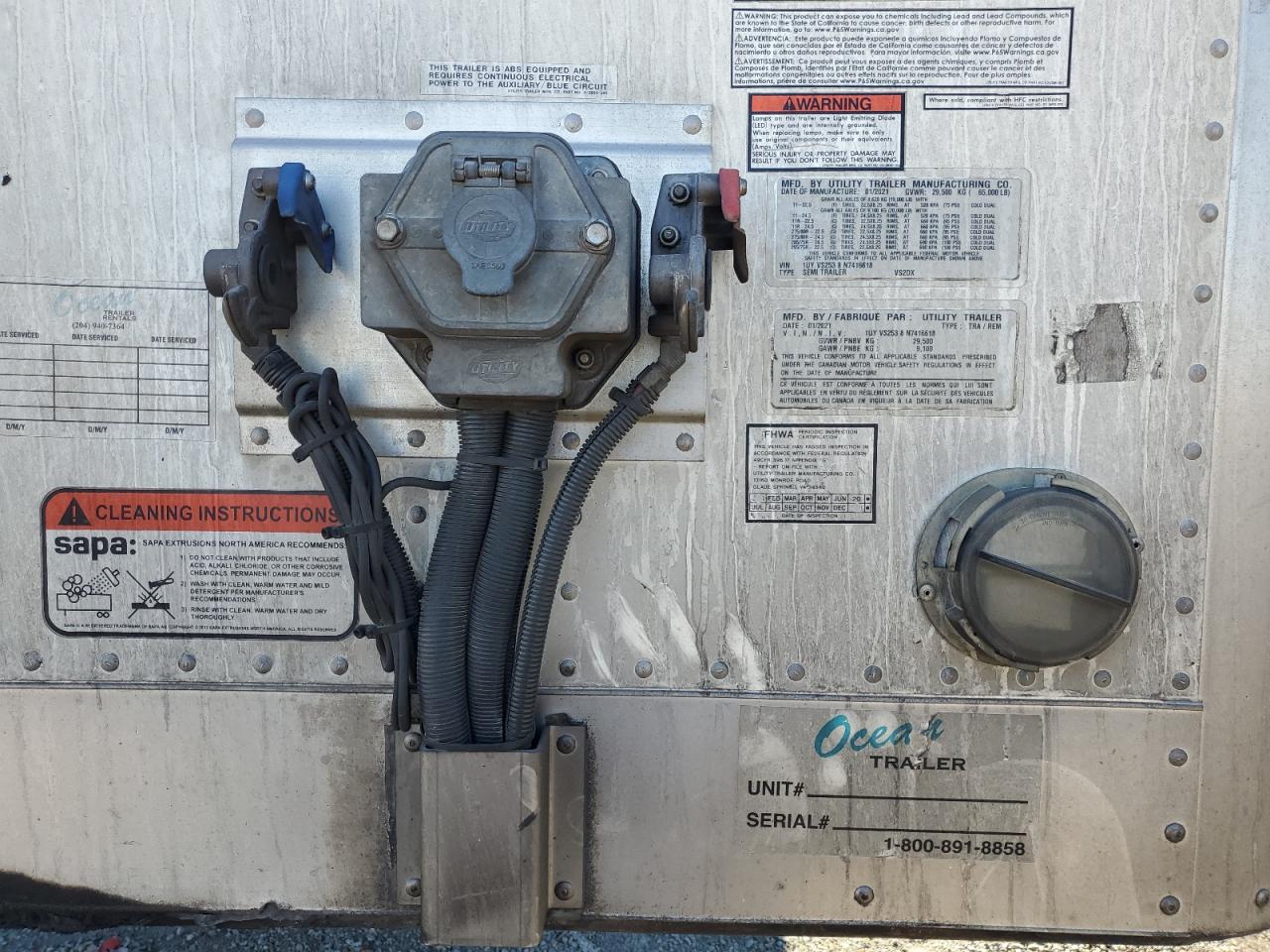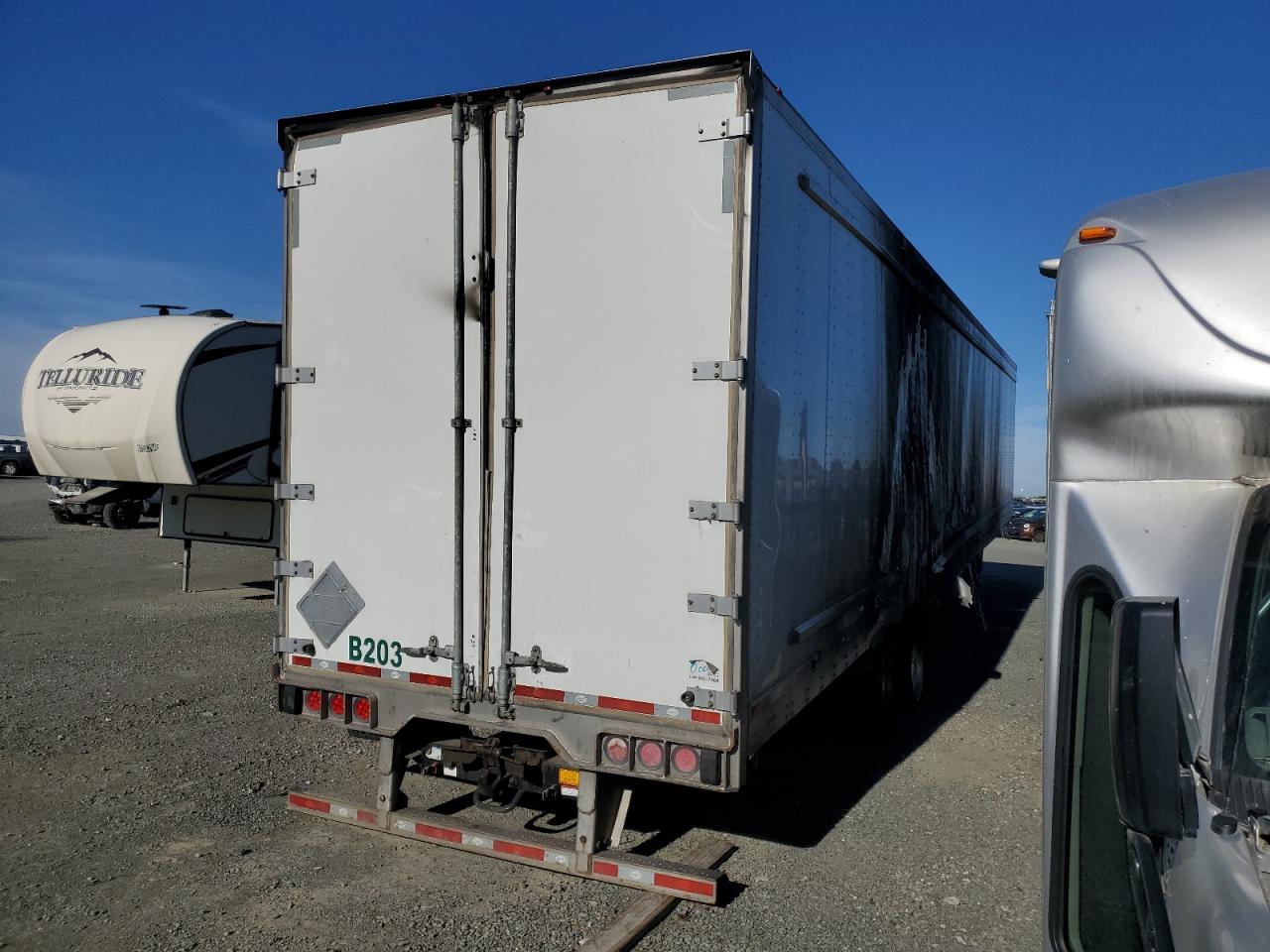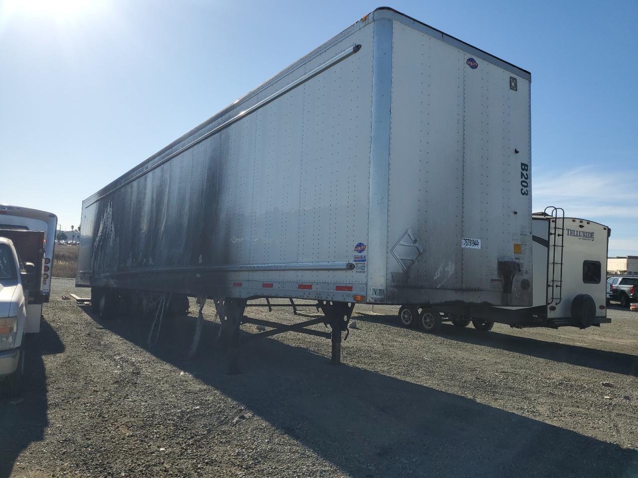 PoorThe UTILITY VS2DX 2022 trailer shows significant fire damage. The exterior has extensive burn marks across multiple panels, particularly on the sides and rear, indicating a severe fire. The trailer is white. The interior appears to have sustained some damage, and the condition of the wheels, lights, and windows is not clearly discernible due to the extensive fire damage. The primary damage is from the burn, while there is no secondary damage. This trailer is likely to need significant repairs or might be considered a total loss, the state is POOR.