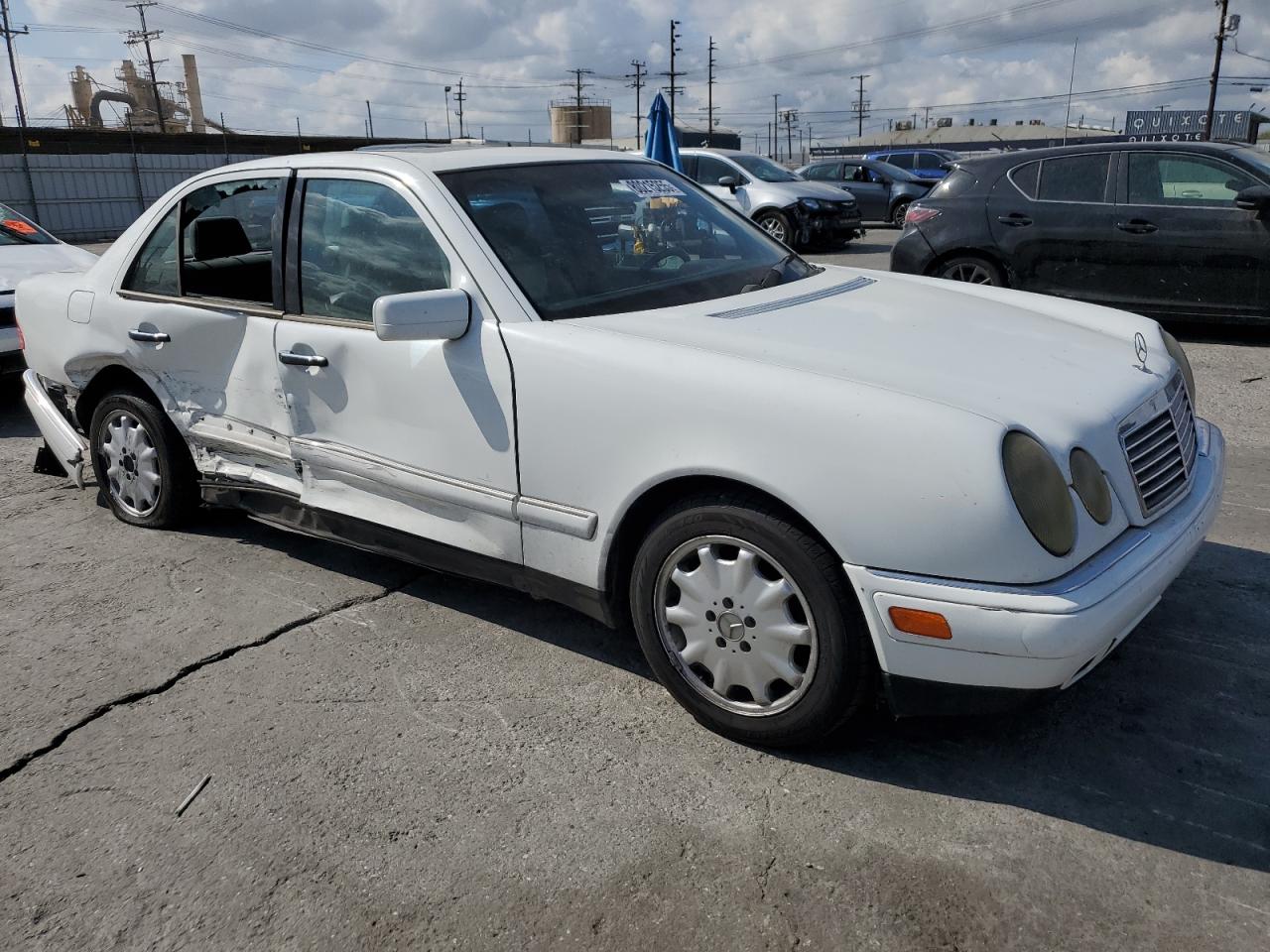 FairThis is a 1998 MERCEDES-BENZ E 320, white in color, indicated by the 'Run & Drive Verified' start code. The primary damage is on the side and the secondary damage is the rear end. The car itself shows signs of wear and tear, indicating a need for some repairs. The wheels, lights and glasses seems to be in decent condition. Interior appears to be in a decent condition. Overall, the vehicle needs repair.