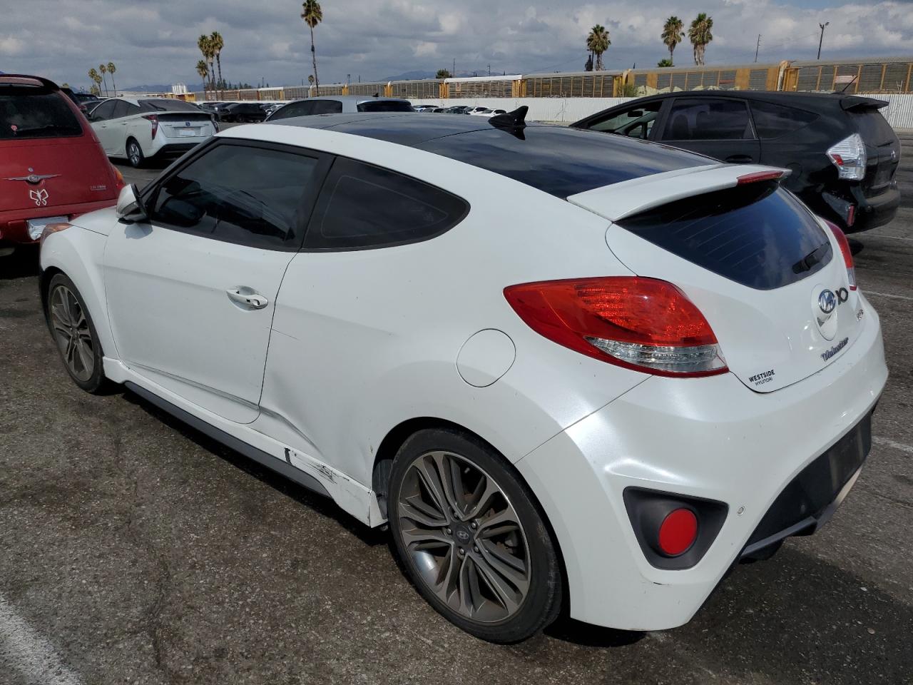 GoodThe white 2016 HYUNDAI VELOSTER T has normal wear with no secondary damage, confirmed as Run & Drive Verified. The exterior shows minor to moderate damage, potentially requiring replacement of some elements, while the interior exhibits minor visible damage consistent with its age and mileage. The wheels, lights, and glasses appear intact.
