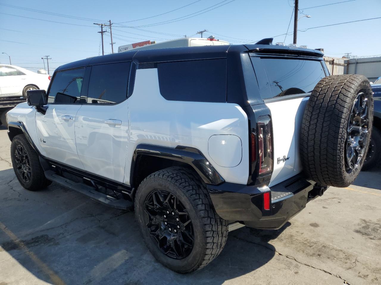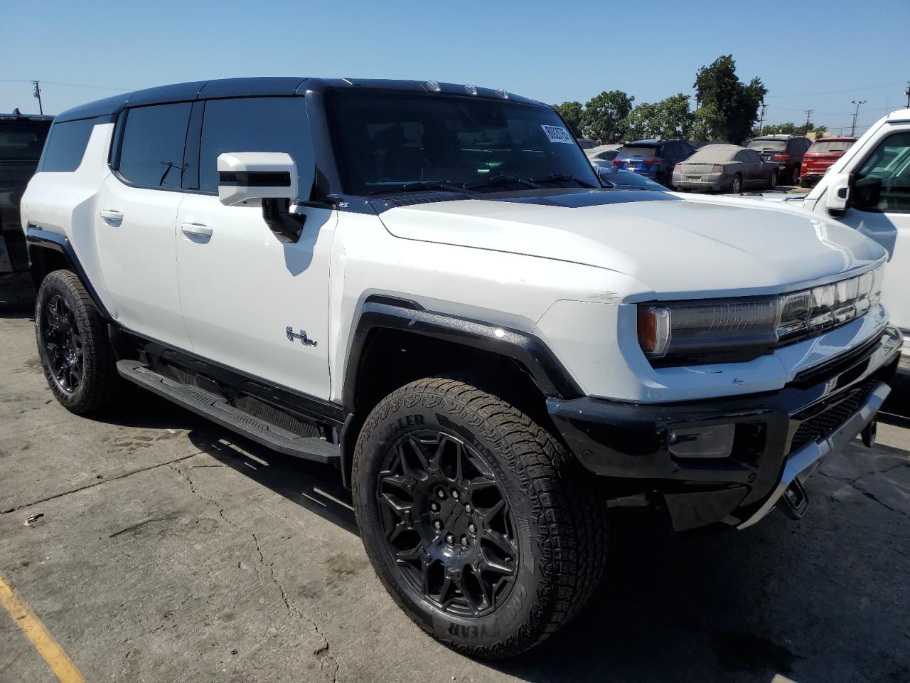 GoodThe 2025 GMC HUMMER SUV is a white, all-electric vehicle with a rugged, boxy design. It features a prominent front grille, black accents, and a spare tire mounted on the rear. The vehicle appears to have front-end damage. The car is verified as Run & Drive.