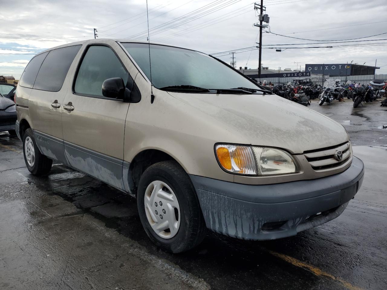 GoodThe 2001 Toyota Sienna CE exhibits minor to moderate cosmetic damage, primarily scratches and minor dents on its tan exterior, along with wear and tear consistent with its age. Interior appears to be in good condition. Wheels and lights seem to be in a functional state. There is no indication of major mechanical issues. The vehicle is drivable. Overall state is Good.