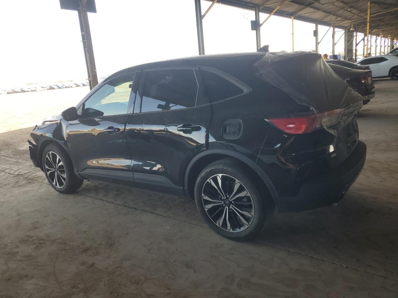 FairThe 2022 FORD ESCAPE SE in black, sustained front-end and rear-end damage. The Run & Drive is Verified. The car's body panels show visible damage. The front end is significantly impacted, and the rear end also has damage. The interior shows normal wear and tear. The vehicle is drivable. The airbags status is unknown.