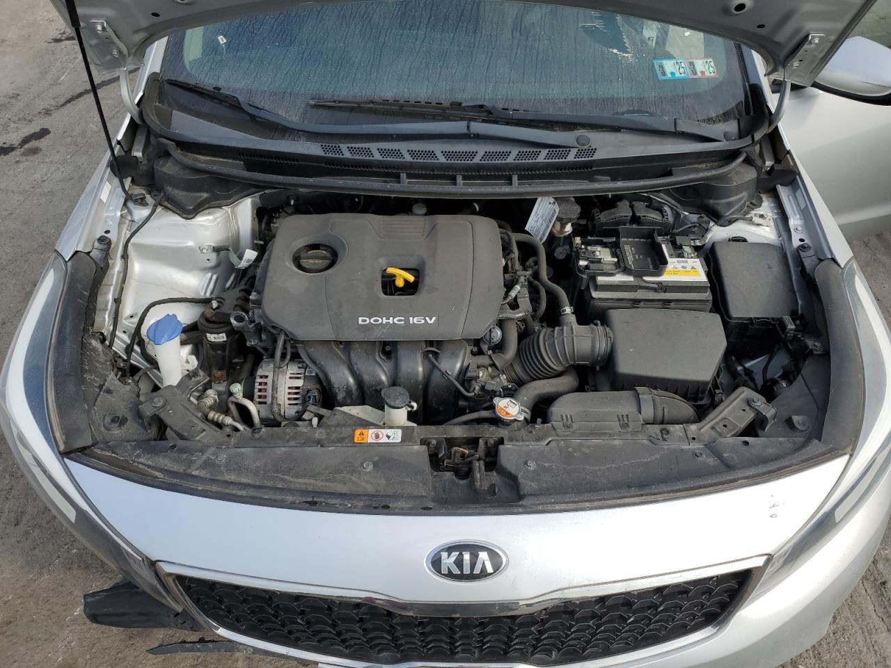 FairThis is a silver 2018 KIA FORTE LX with front-end and side damage. The vehicle's front end shows significant damage, including the bumper, grille, and possible structural components. Side damage is also apparent. The interior appears to be in good condition overall, with no obvious signs of significant damage. The wheels and glasses are intact. The airbags status is not visible, so I cannot tell if they are deployed.