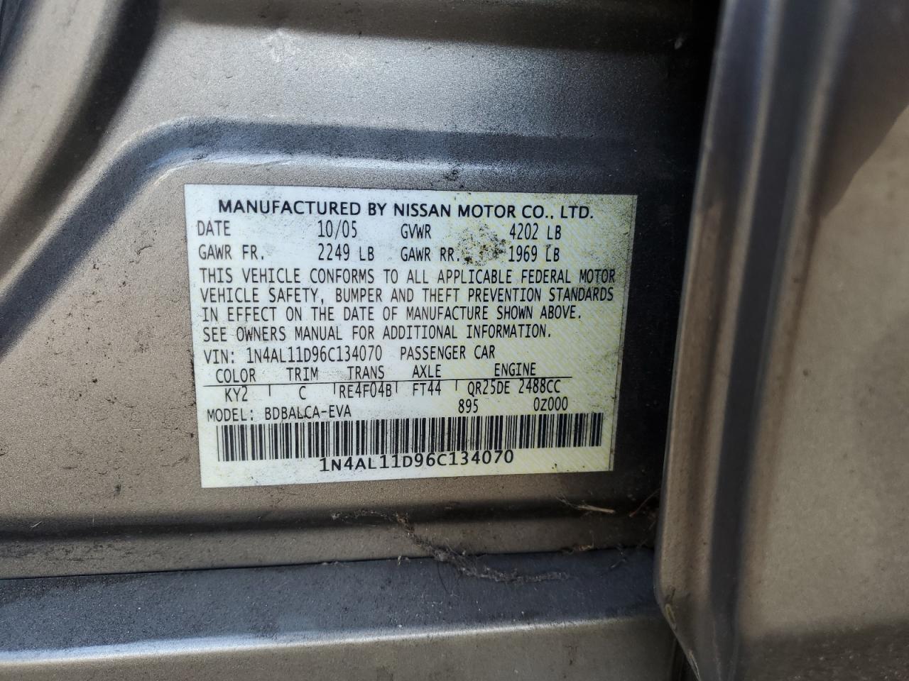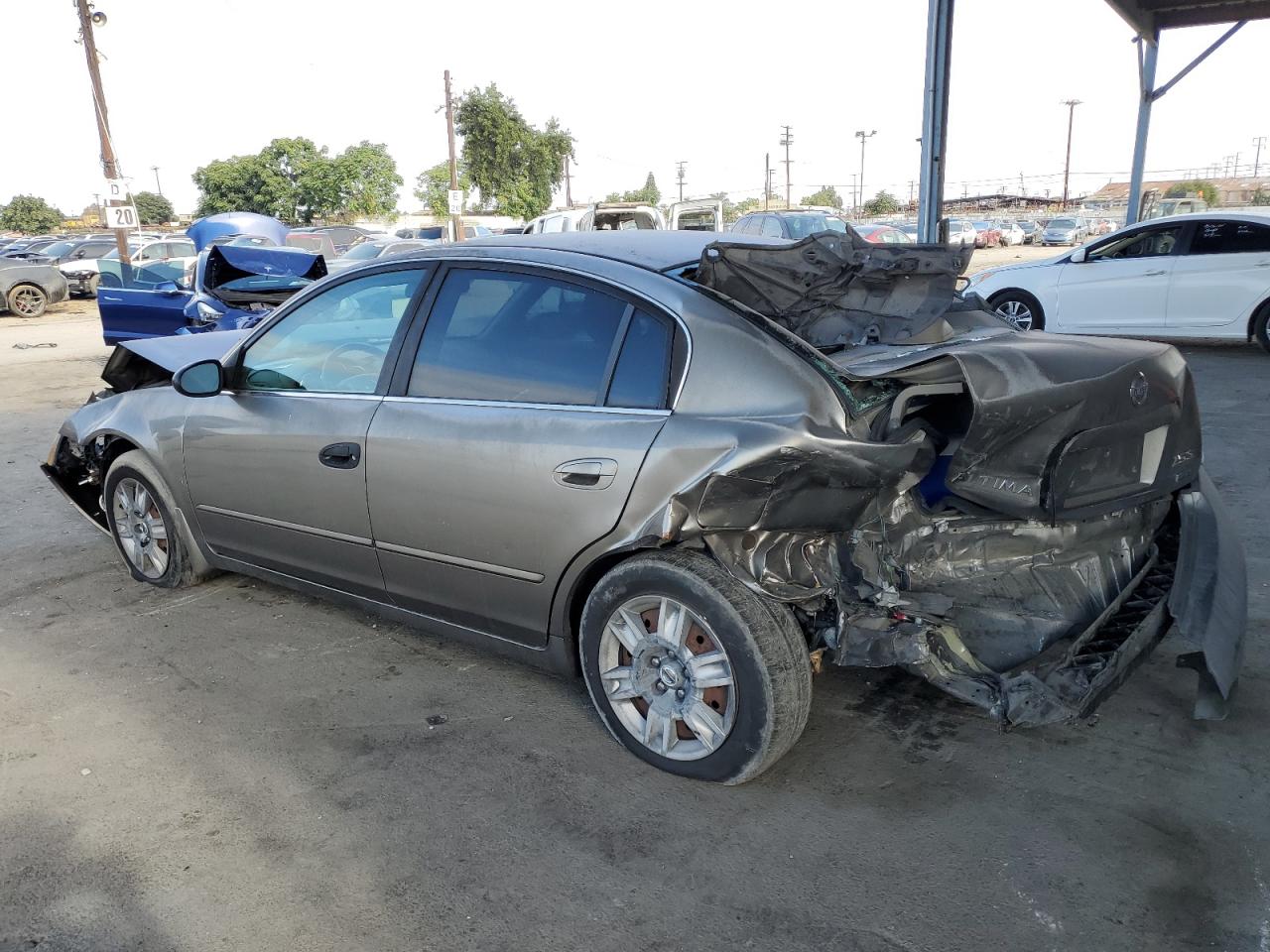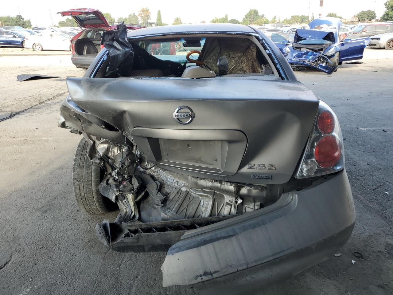 The front end of the ALTIMA is severely damaged, with the hood crumpled and front bumper and lights destroyed. The rear end also sustained significant damage, with body panels crushed. The interior shows signs of wear and tear.
