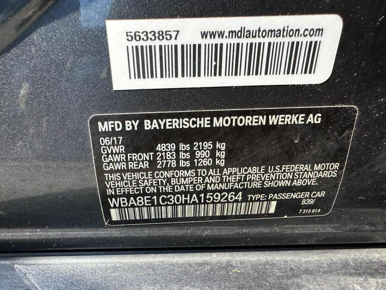 GoodThe 2017 BMW 330e is presented with a gray exterior, featuring a black interior with red seats. The vehicle shows signs of minor damage including dents and scratches, categorized as cosmetic damage. The car's condition is overall assessed as 'Good,' with a 'Very Good' interior condition, and a 'Good' overall exterior state, indicating that it is drivable but may require some cosmetic repairs. The 'Run & Drive Verified' status confirms its operational capability.