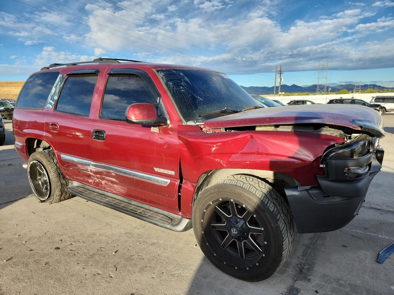 FairThis is a maroon 2001 GMC Yukon. The vehicle has sustained front-end and side damage. The vehicle starts. The wheels appear to be in good condition. The lights and glass are in acceptable condition, but there is obvious damage to the body panels.