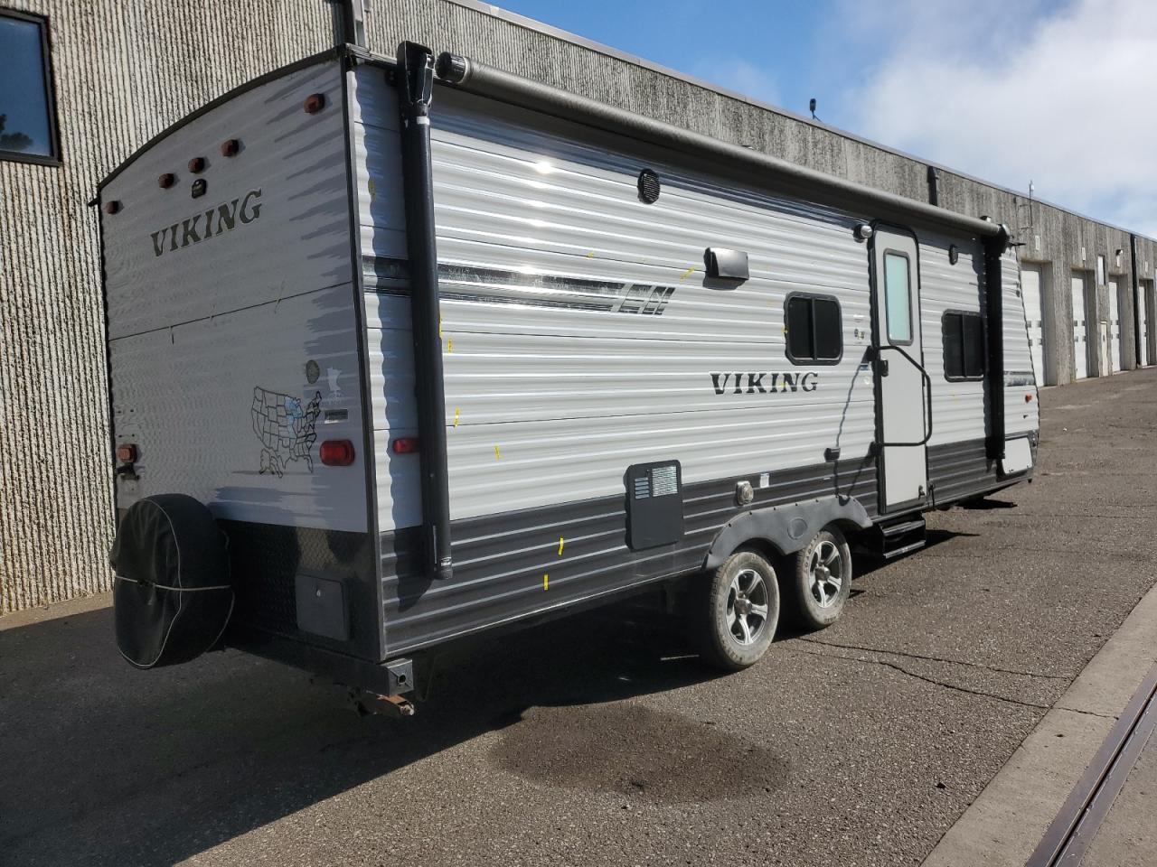 FairThe 2019 WILDWOOD VIKING, a gray RV, presents with primary damage on the side and secondary damage to the rear end. The body panels show damage consistent with its age and use. The wheels appear to be in good condition. The interior condition is good with minor wear and tear. No airbag deployment is noted. The vehicle is drivable. Vehicle Damage Category: Body