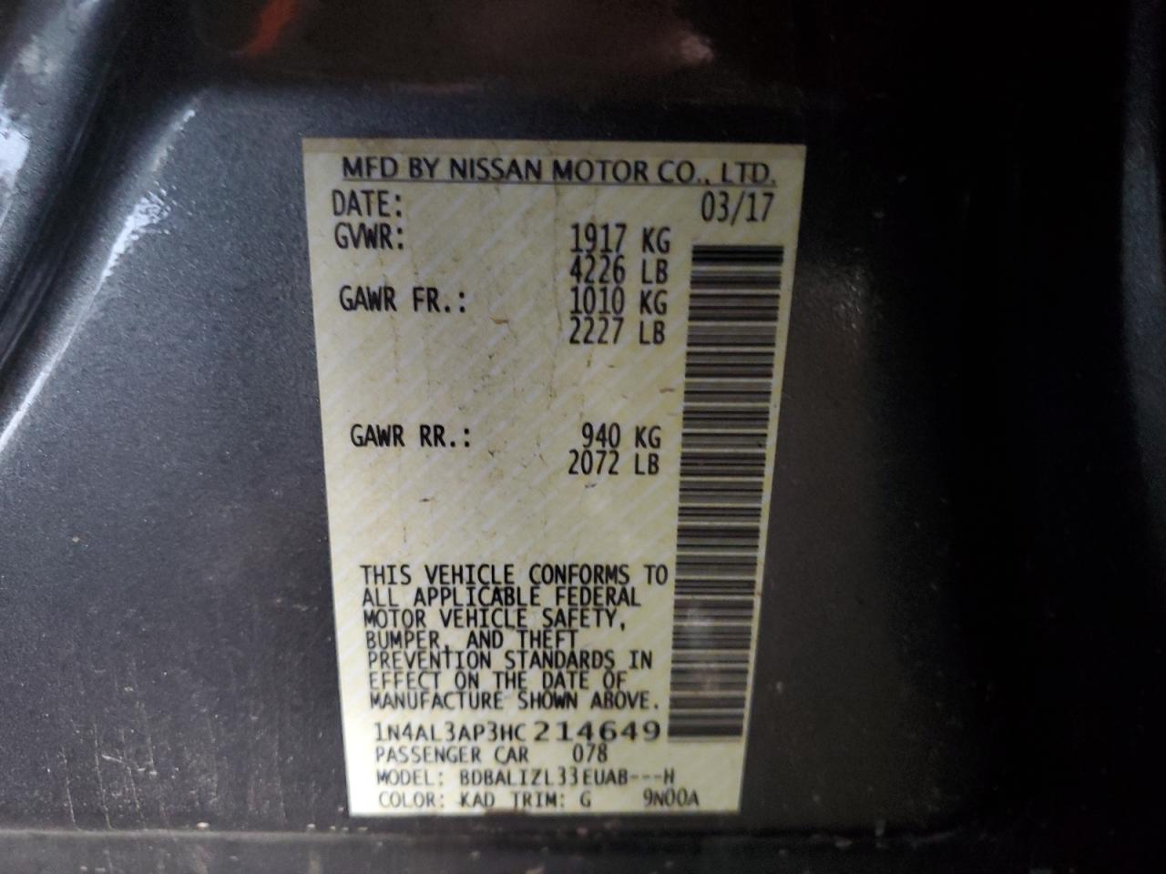 FairThe 2017 Nissan Altima is a gray sedan with significant front-end damage. The front bumper, grille, and some body panels are missing or heavily damaged. The vehicle appears drivable but requires considerable repair. The interior shows signs of wear but is in decent condition. It start code is Run & Drive Verified. The wheels and glasses are present but the lights are damaged.