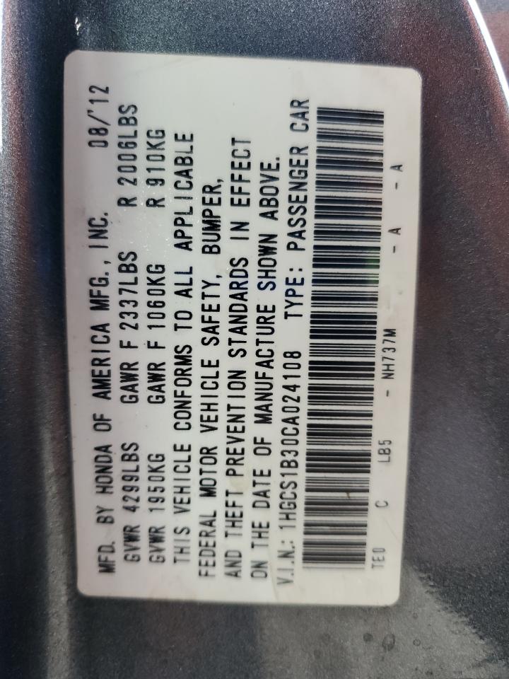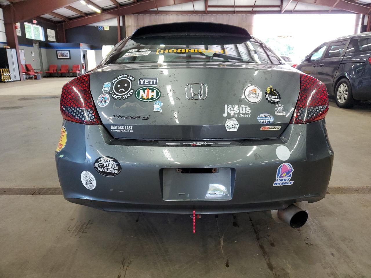 Fair2012 Honda Accord LX. This gray coupe shows evidence of significant front-end damage, including a damaged bumper, hood, and possible structural issues. The secondary damage includes minor dents and scratches across the body. Interior condition appears worn, with visible wear and tear on the seats and interior trim. The car is confirmed to Run & Drive.