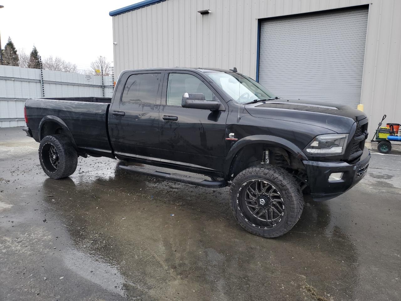 FairThis is a 2014 RAM 3500 Laramie. The primary damage is to the side and the secondary damage is to the rear end. The vehicle is black and starts. The vehicle's condition requires repair but is drivable. The interior shows some wear and tear, but is in generally good condition. There is no visible damage to the wheels, lights or glasses.