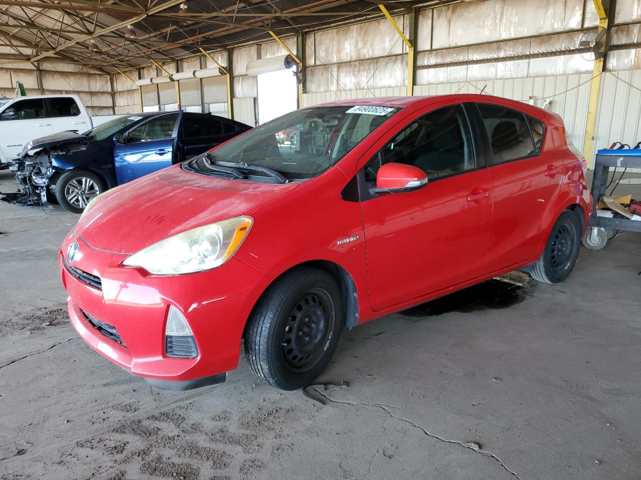 Good2014 TOYOTA PRIUS C in red. Vehicle shows signs of normal wear and tear. The car is drivable and has a Run & Drive Verified status.