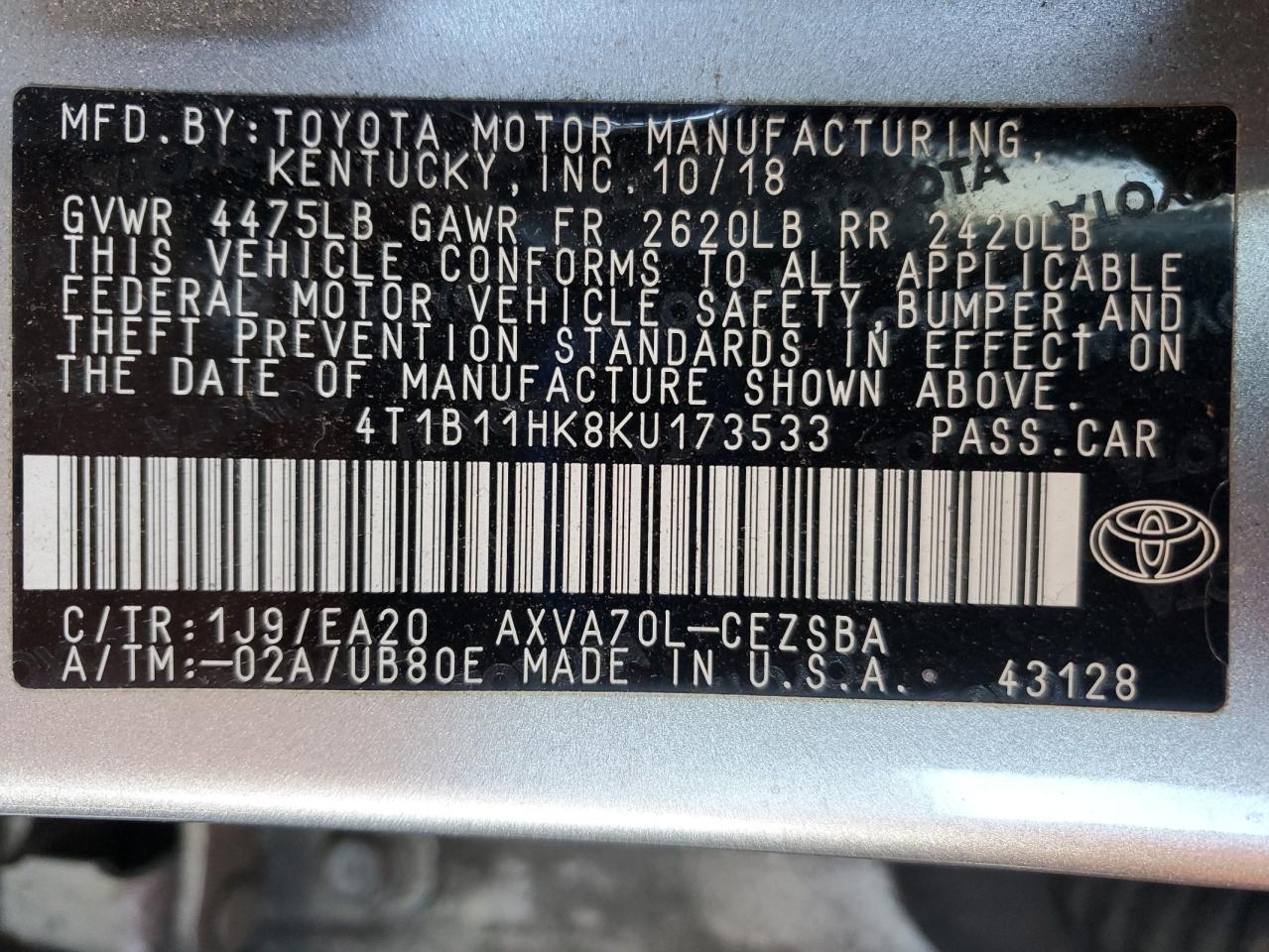 FairThis is a silver 2019 Toyota Camry L with rear-end and front-end damage. The vehicle starts. The car has a visible damage to the rear and front, indicating a moderate impact. The interior shows signs of wear with damage.