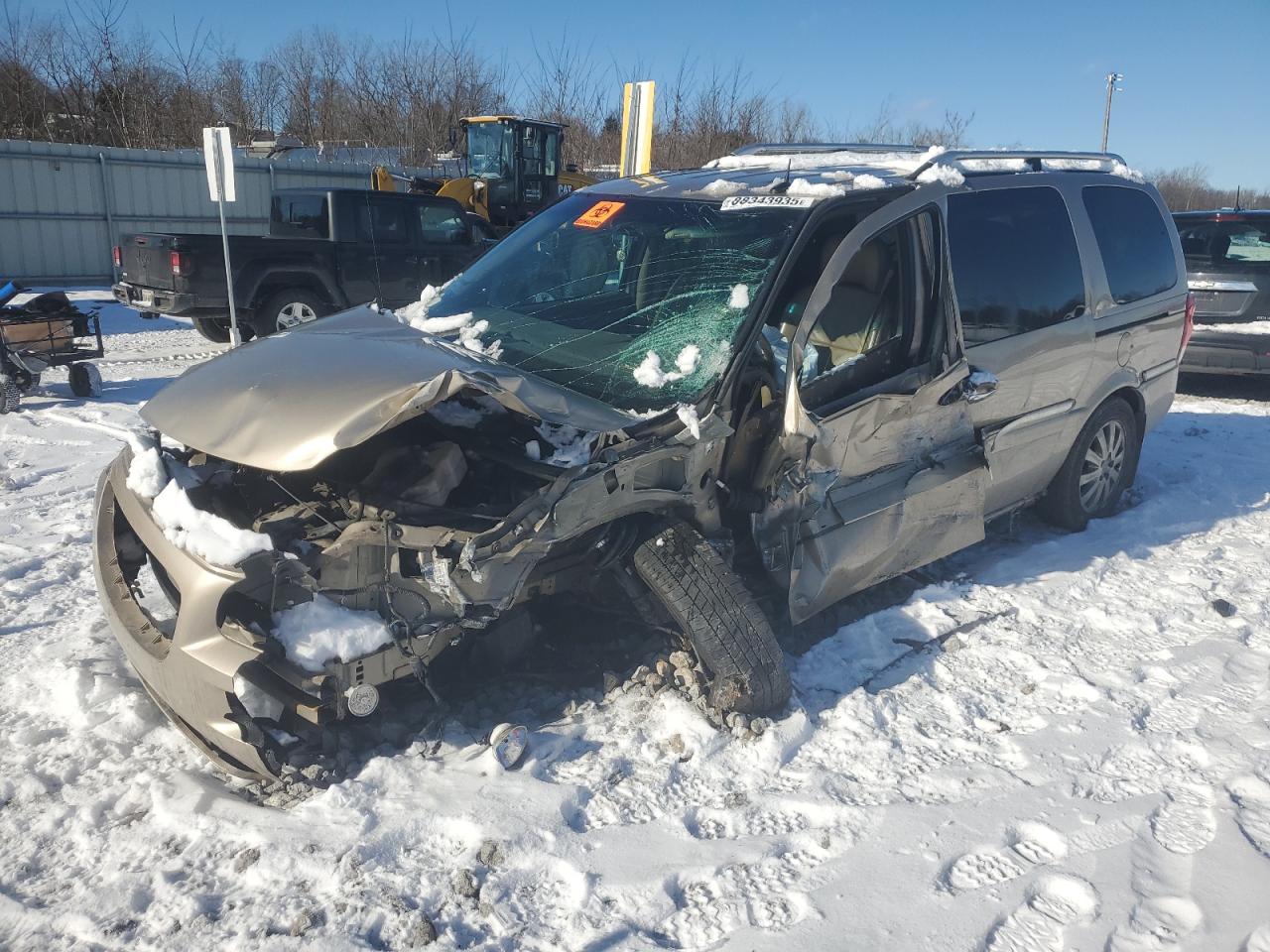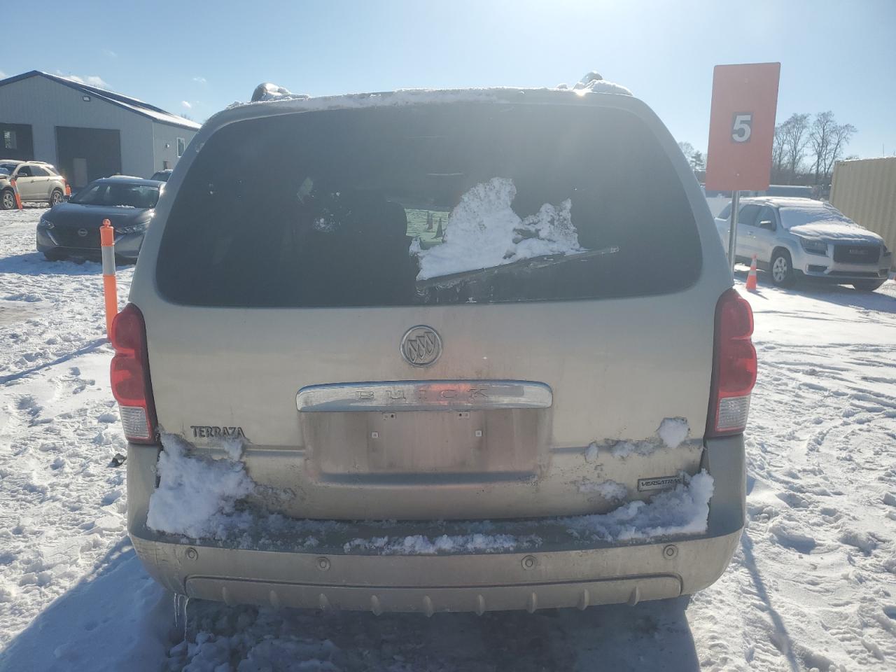 PoorThe 2005 BUICK TERRAZA CX is severely damaged with extensive front-end and side damage, suggesting a significant impact. The tan-colored minivan exhibits substantial body damage, including a crushed front end and side panel damage. Interior damage is evident, with deployed airbags. The vehicle's condition indicates it's not drivable and requires substantial repairs. The front windshield is shattered, and the lights are likely damaged. The wheels appear to be intact, but the overall state is poor, and it is best described as a salvage vehicle. The car’s airbags are deployed.
