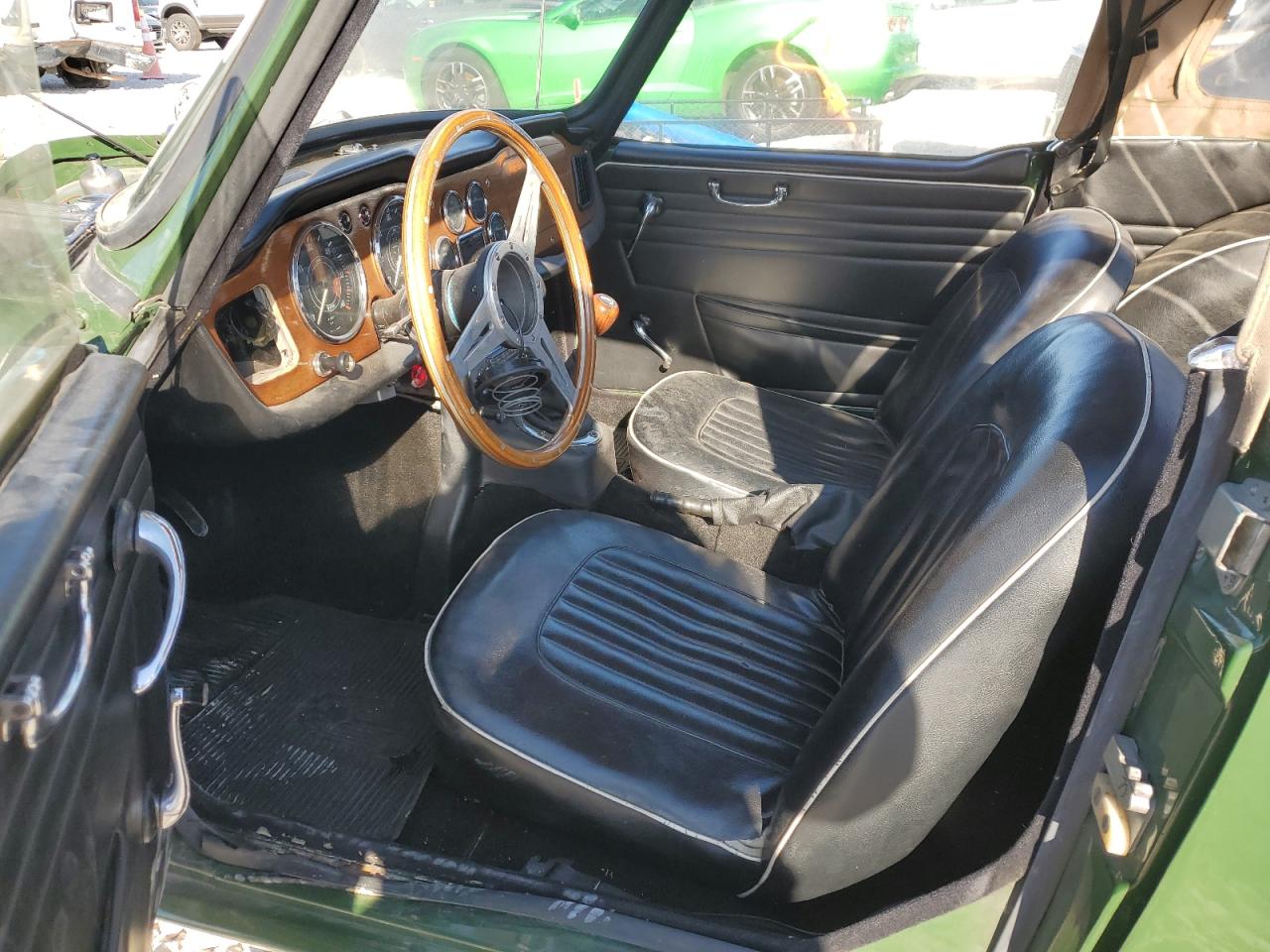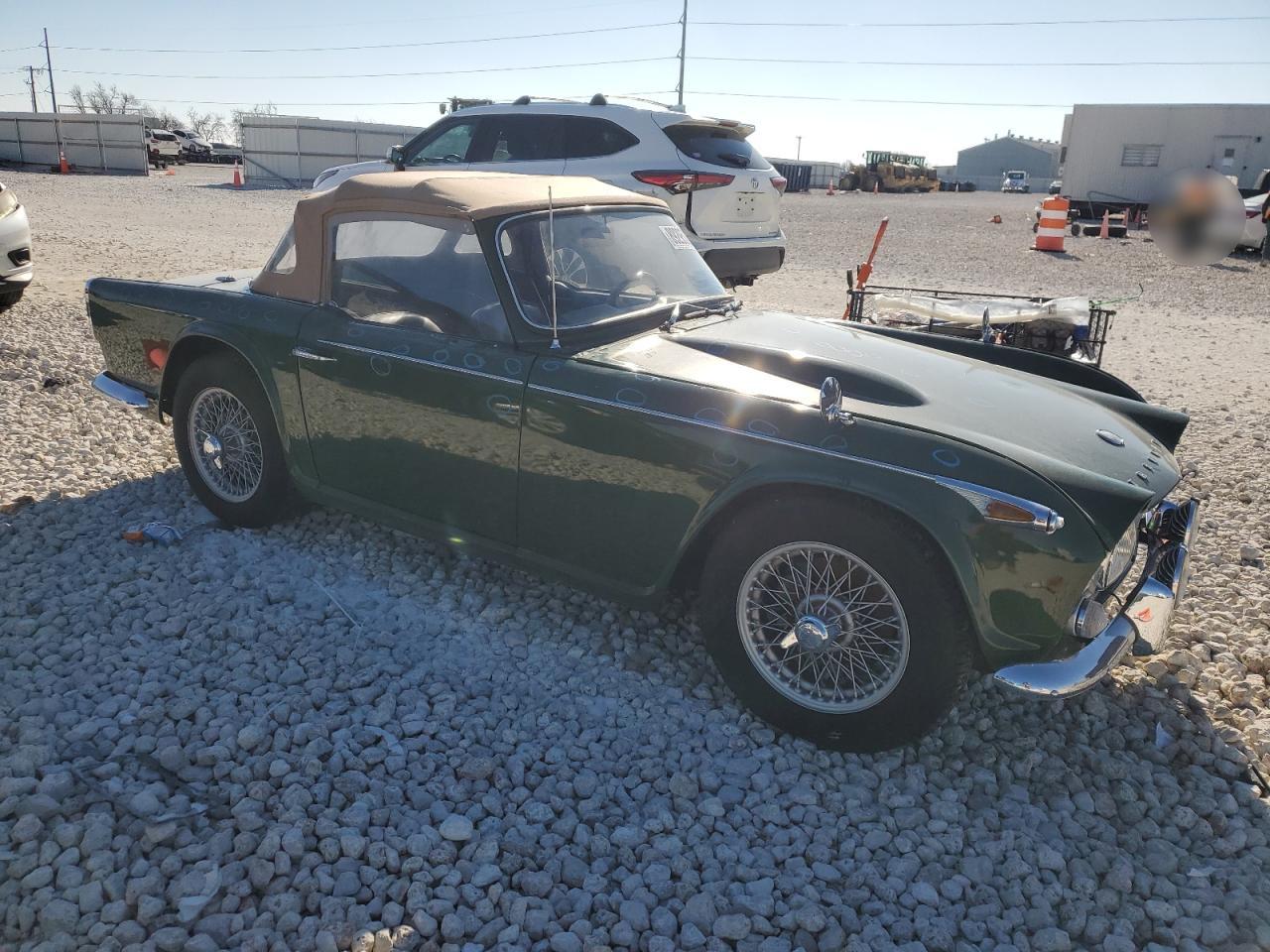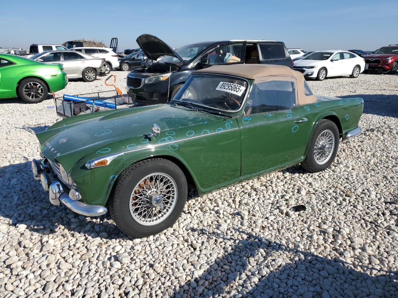 FairThe 1966 Triumph TR4A is a classic British roadster, a stylish and fun-to-drive car. The images show a green TR4A with a tan convertible top. The primary damage appears to be hail, with numerous small dents visible across the body panels. The wheels and lights seem to be in good condition, with no obvious damage, and the glass appears intact. The interior shows wear consistent with age and mileage, with a wooden steering wheel and black leather seats. Summary: This 1966 Triumph TR4A has suffered hail damage. The body panels show a significant amount of hail damage, but the wheels, lights, and glass appear to be in good condition. The interior shows minimal wear and tear consistent with the age of the car. The car is drivable and suitable for restoration.