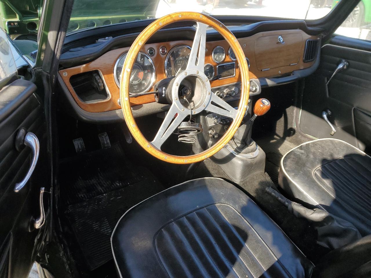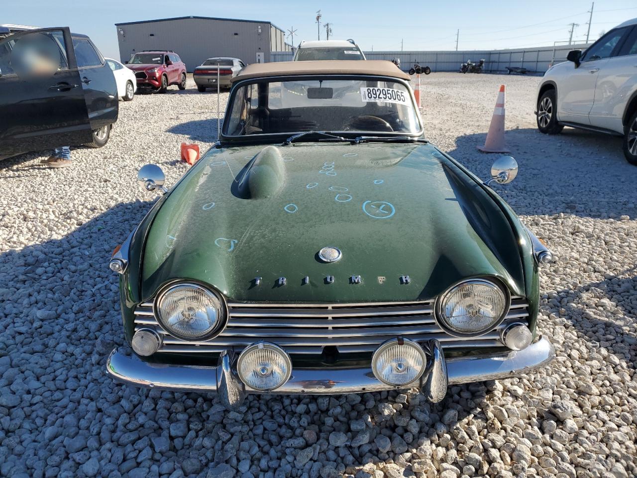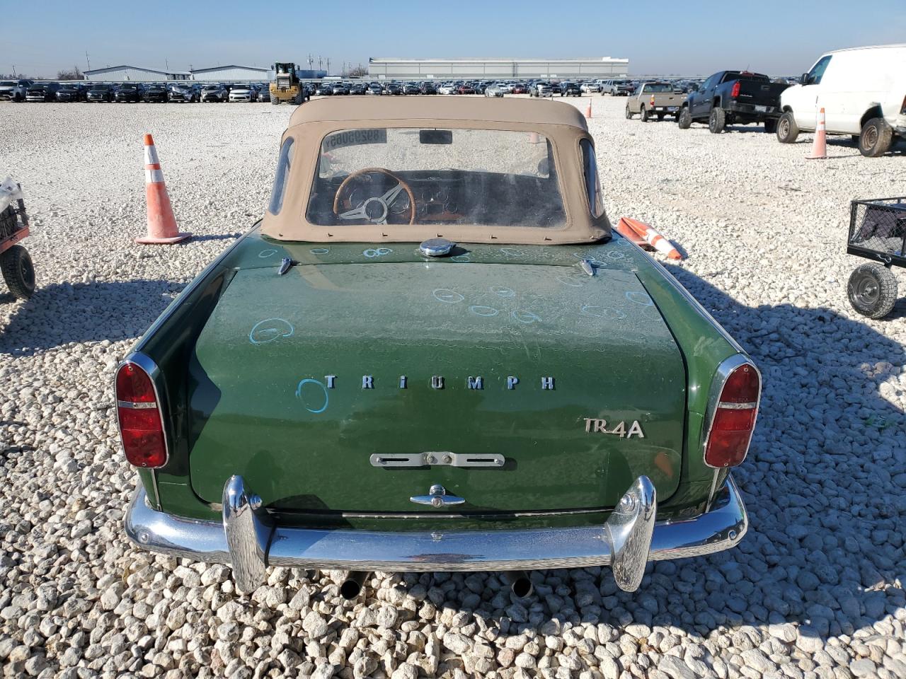 FairThe 1966 Triumph TR4A is a classic British roadster, a stylish and fun-to-drive car. The images show a green TR4A with a tan convertible top. The primary damage appears to be hail, with numerous small dents visible across the body panels. The wheels and lights seem to be in good condition, with no obvious damage, and the glass appears intact. The interior shows wear consistent with age and mileage, with a wooden steering wheel and black leather seats. Summary: This 1966 Triumph TR4A has suffered hail damage. The body panels show a significant amount of hail damage, but the wheels, lights, and glass appear to be in good condition. The interior shows minimal wear and tear consistent with the age of the car. The car is drivable and suitable for restoration.
