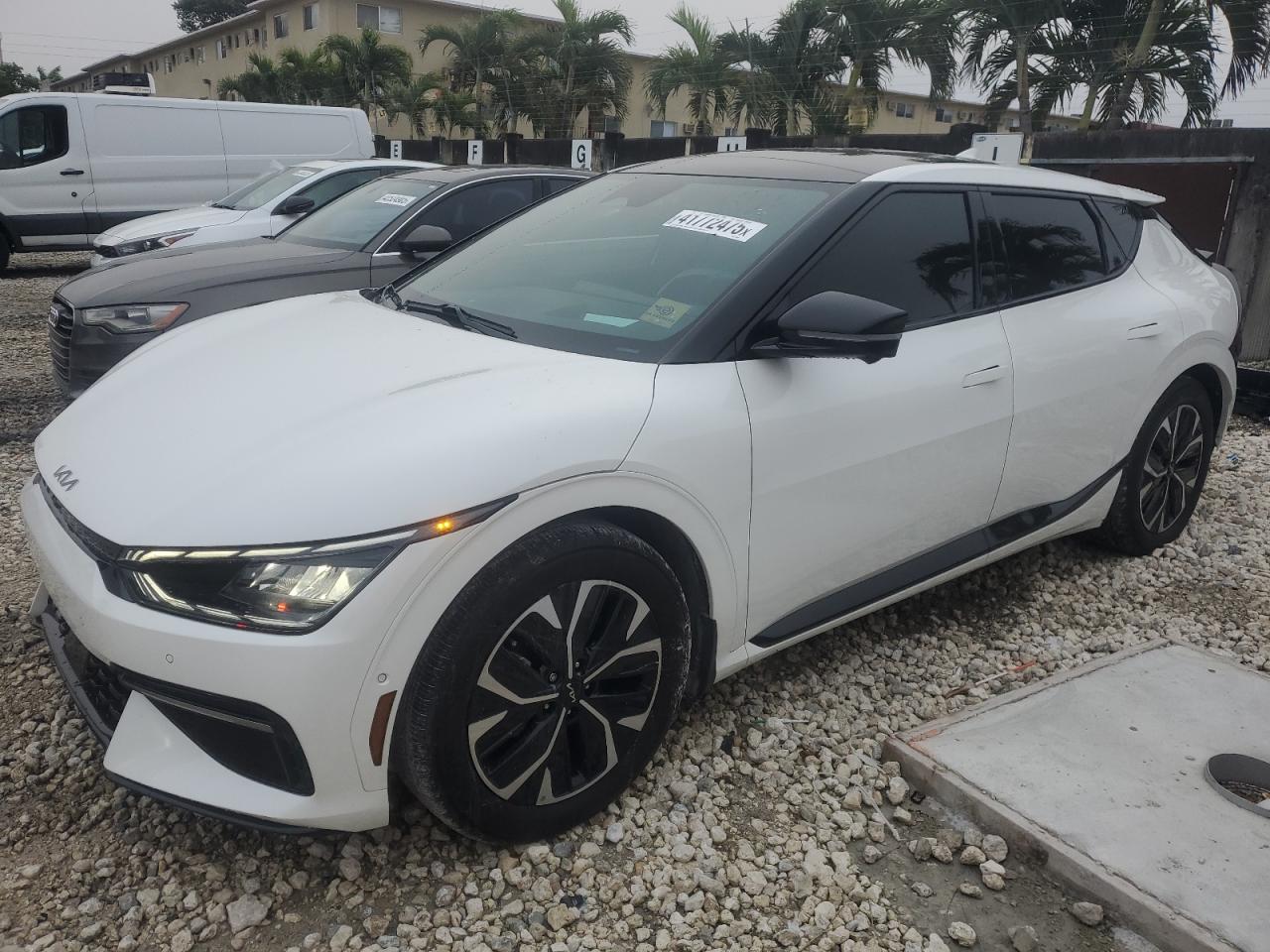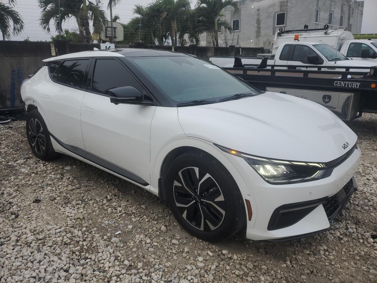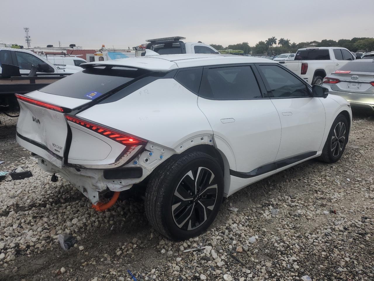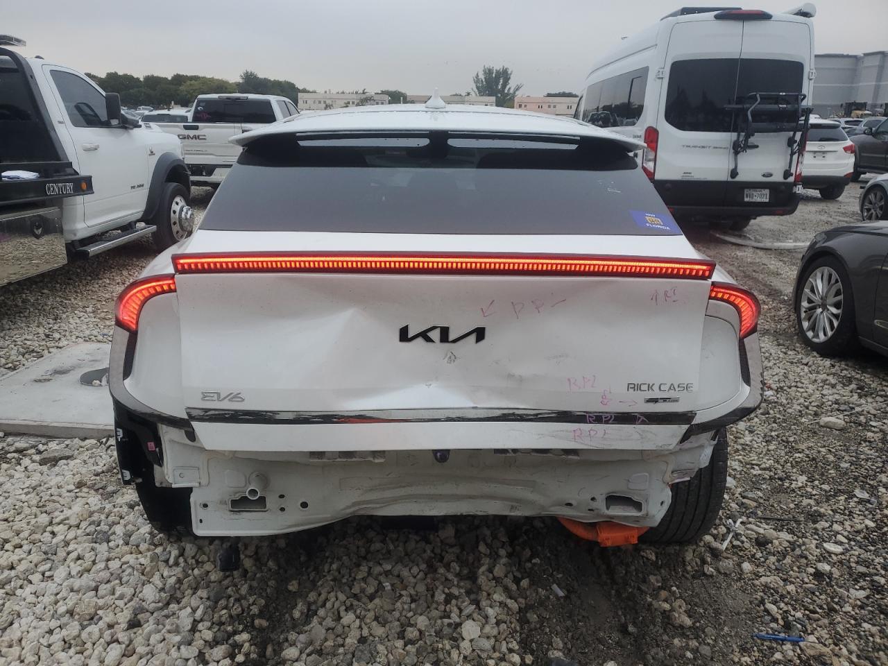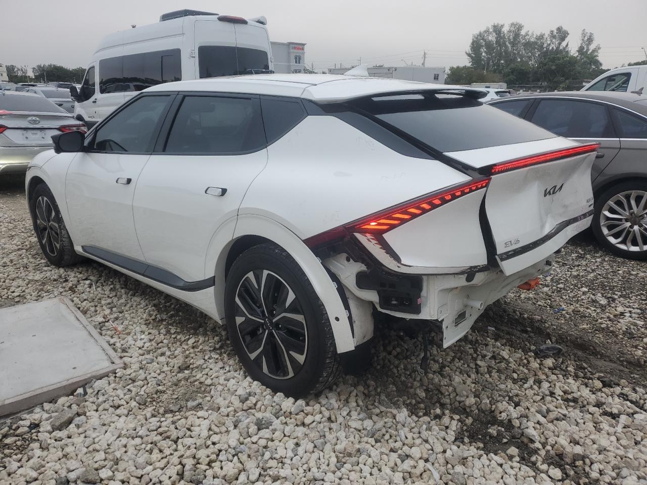 FairThe white 2023 KIA EV6 GT-Line shows REAR END damage. The body has significant damage. The car is drivable and has a Run & Drive Verified start code. Interior shows no damages. Overall, the car is in Fair condition.