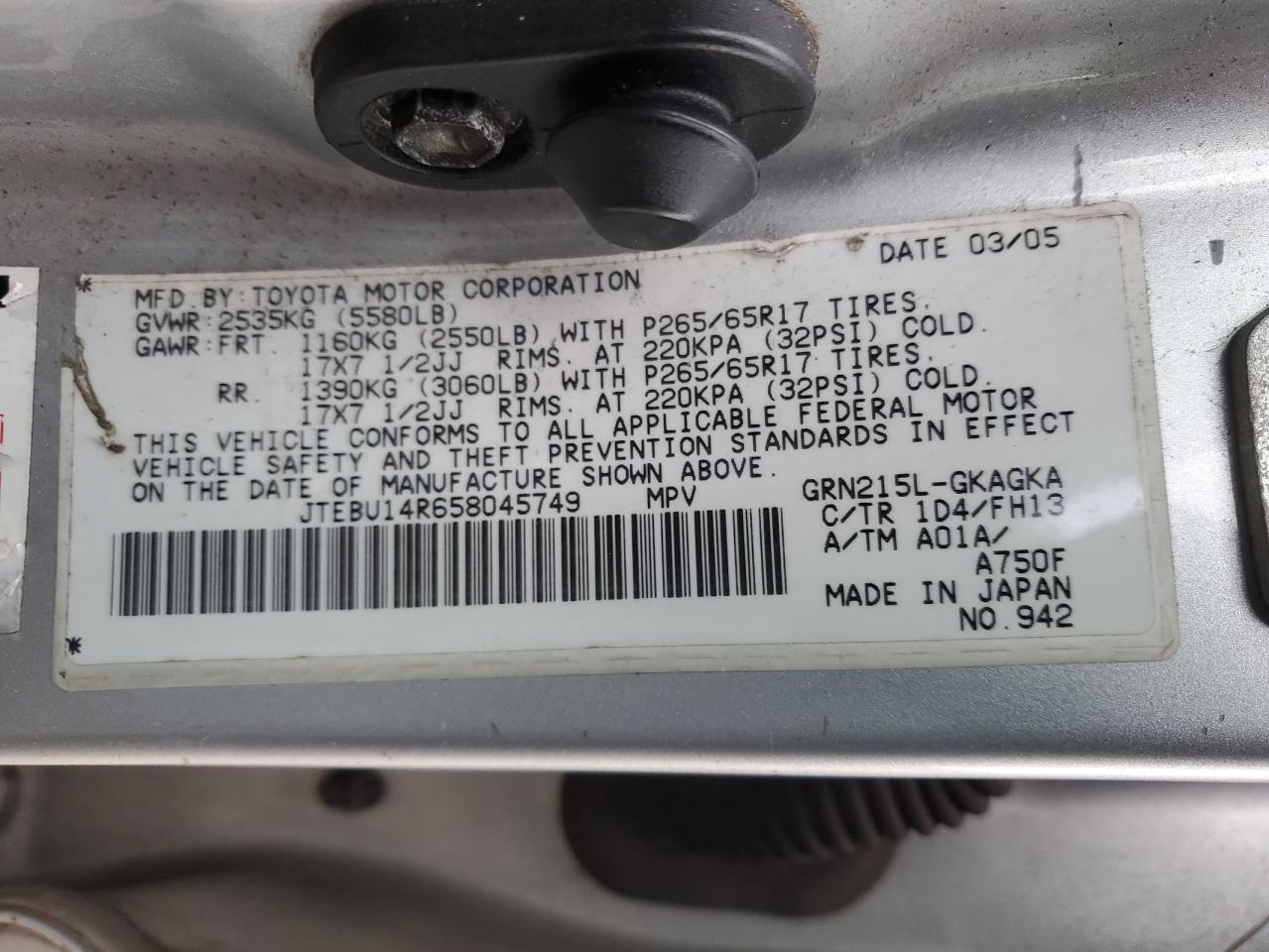FairThe 2005 TOYOTA 4RUNNER SR is silver and has suffered significant damage. The primary damage is to the front end, and the secondary damage is to the rear end. The start code is Run & Drive Verified. The wheels appear to be intact, but the lights and glasses are likely affected by the front-end collision. The interior shows wear and tear. **Damage Description:** Heavy front-end and rear-end damage to the body panels. **Visible Damage List:** - Front-end damage - Rear-end damage - Body panel damage