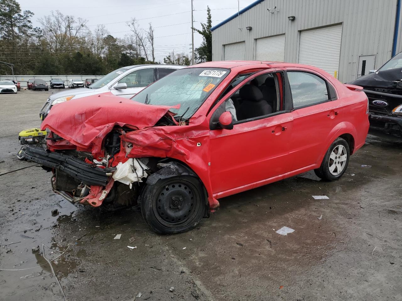 PoorThe 2007 Chevrolet Aveo Base is a red compact car that has sustained significant front-end damage, including a crushed front bumper, hood, and fenders. The front-end collision has also affected the vehicle's structure, and the airbags have deployed, indicating a severe impact. Interior damage is extensive, with components detached and scattered, and significant damage to the dashboard and seats. The car's lights and glass are also likely damaged. This Aveo requires considerable repair and is not drivable.