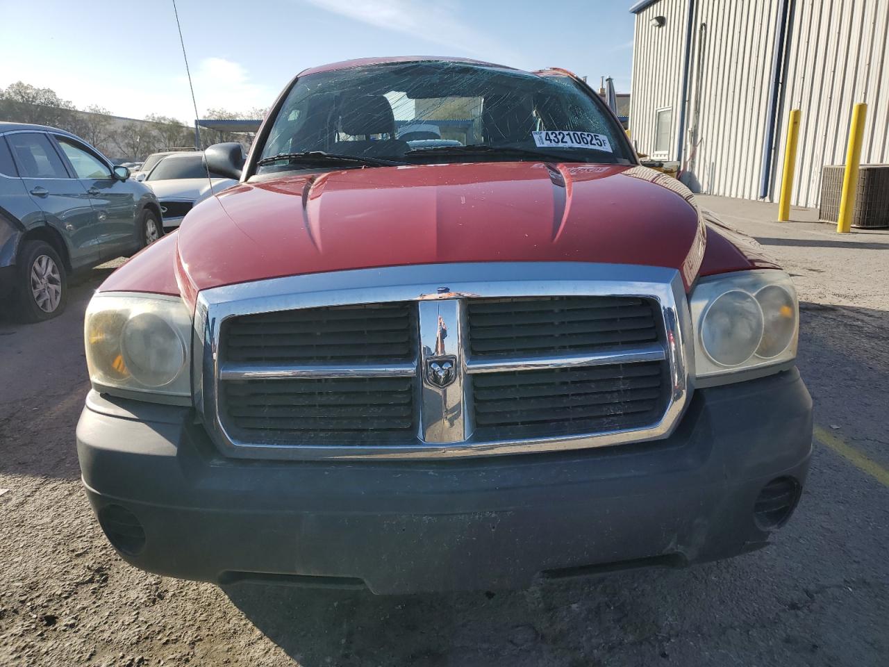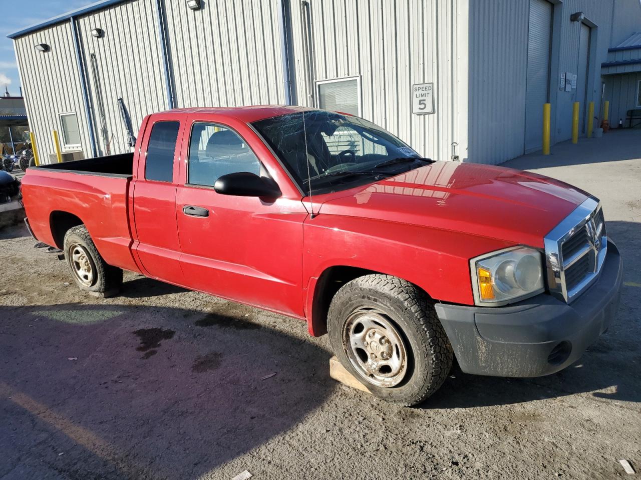 FairThe 2005 Dodge Dakota ST is a red pickup truck. The primary damage is to the top/roof, and there is no secondary damage. The car starts and drives, verified. Overall, the vehicle appears to have moderate damage, mainly affecting the body. The wheels appear to be in good condition, and the lights and glasses are intact with a clear view. The interior shows some wear, especially the seats. The airbags' status is unknown. The truck needs some body repair to be fully restored. The engine and other mechanical parts are not affected.
