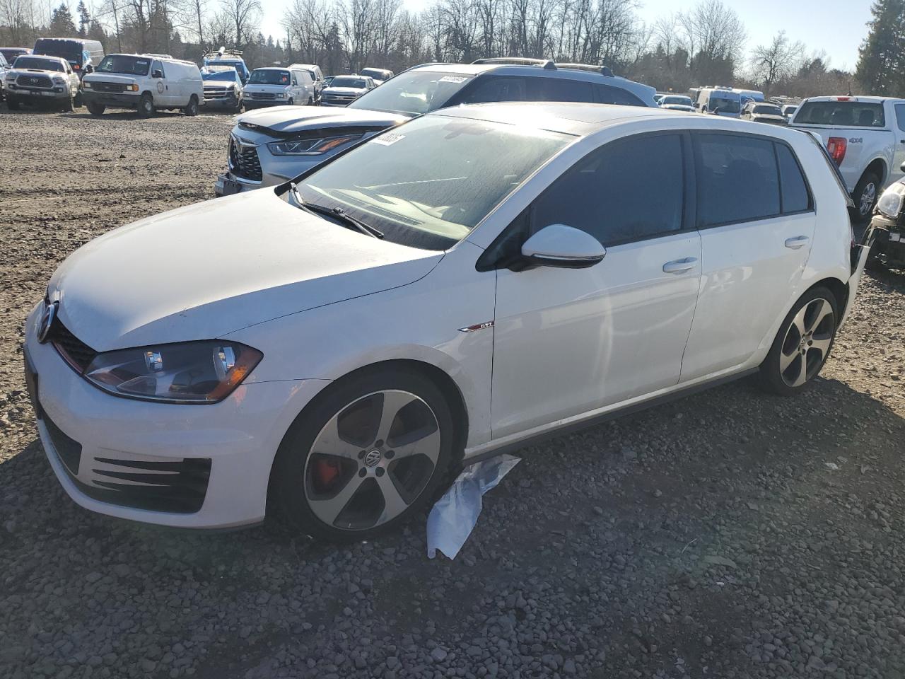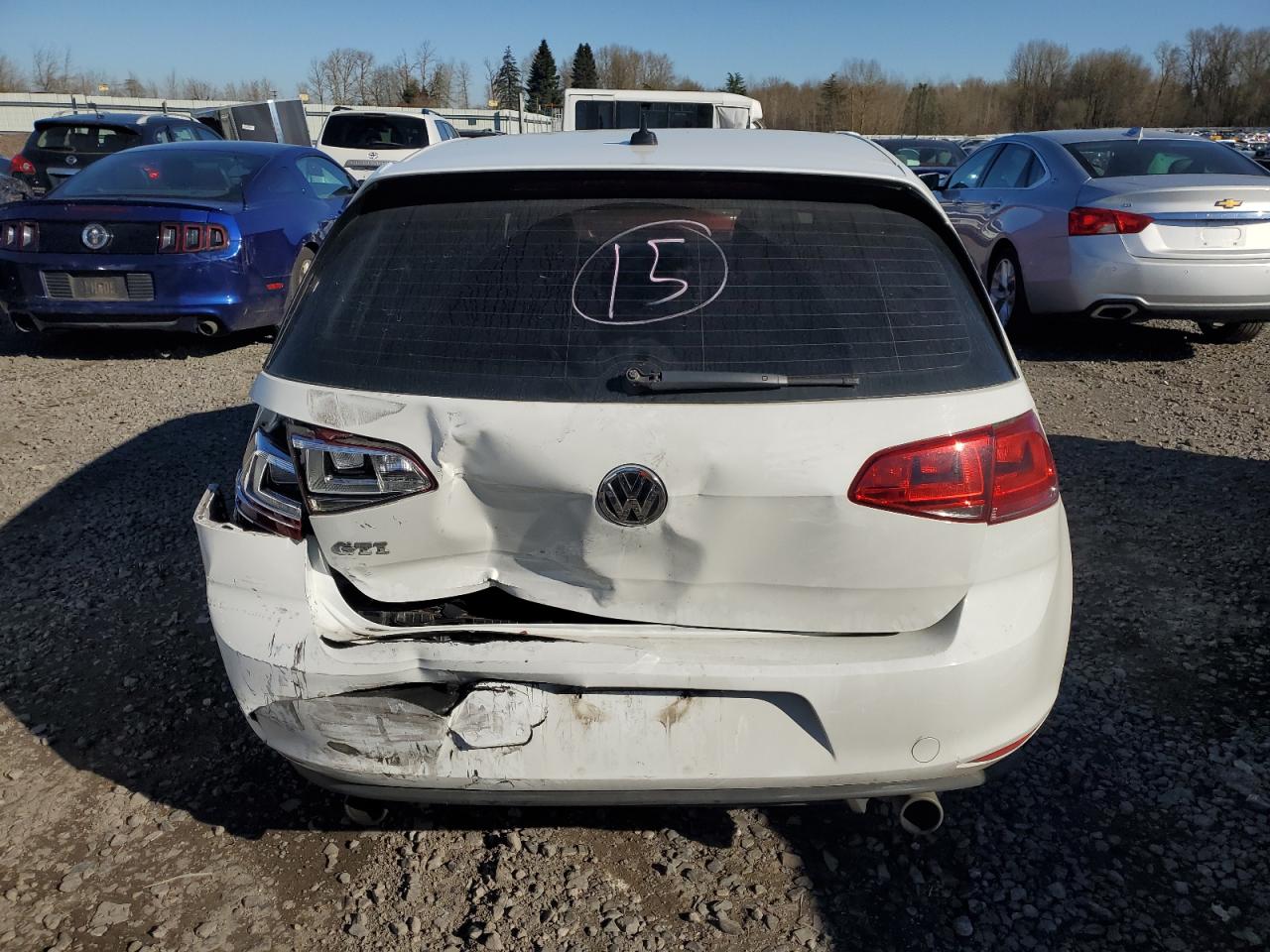 FairThe 2015 VOLKSWAGEN GTI is a white hatchback. The primary damage is a rear-end collision. The car shows visible damage to the rear body panels, impacting the lights and potentially the rear glass. The wheels appear intact. Interior photos show wear and tear consistent with the car's age and mileage. It might need some replacements and repairs, but the car appears drivable. Overall the car condition is fair.