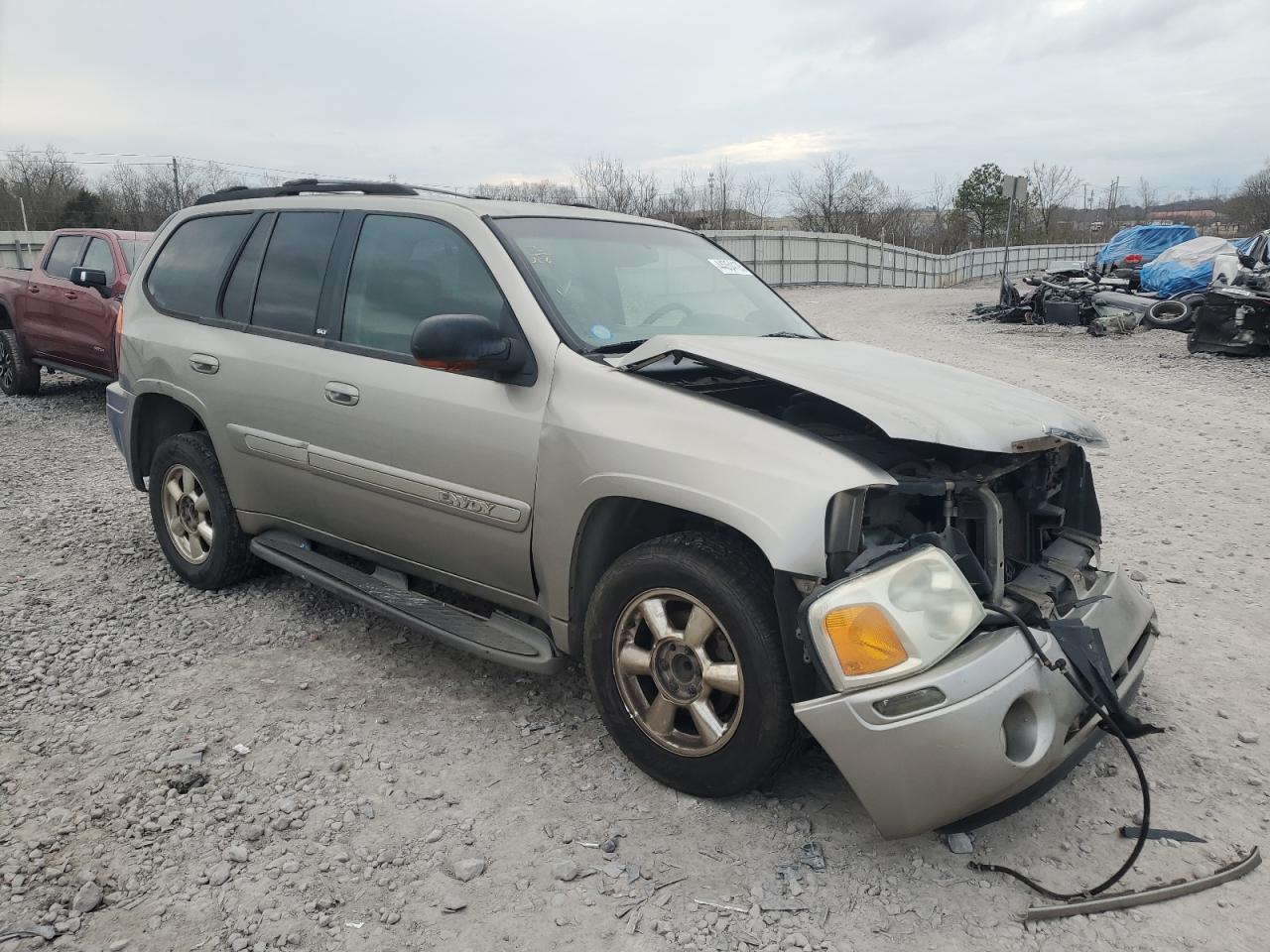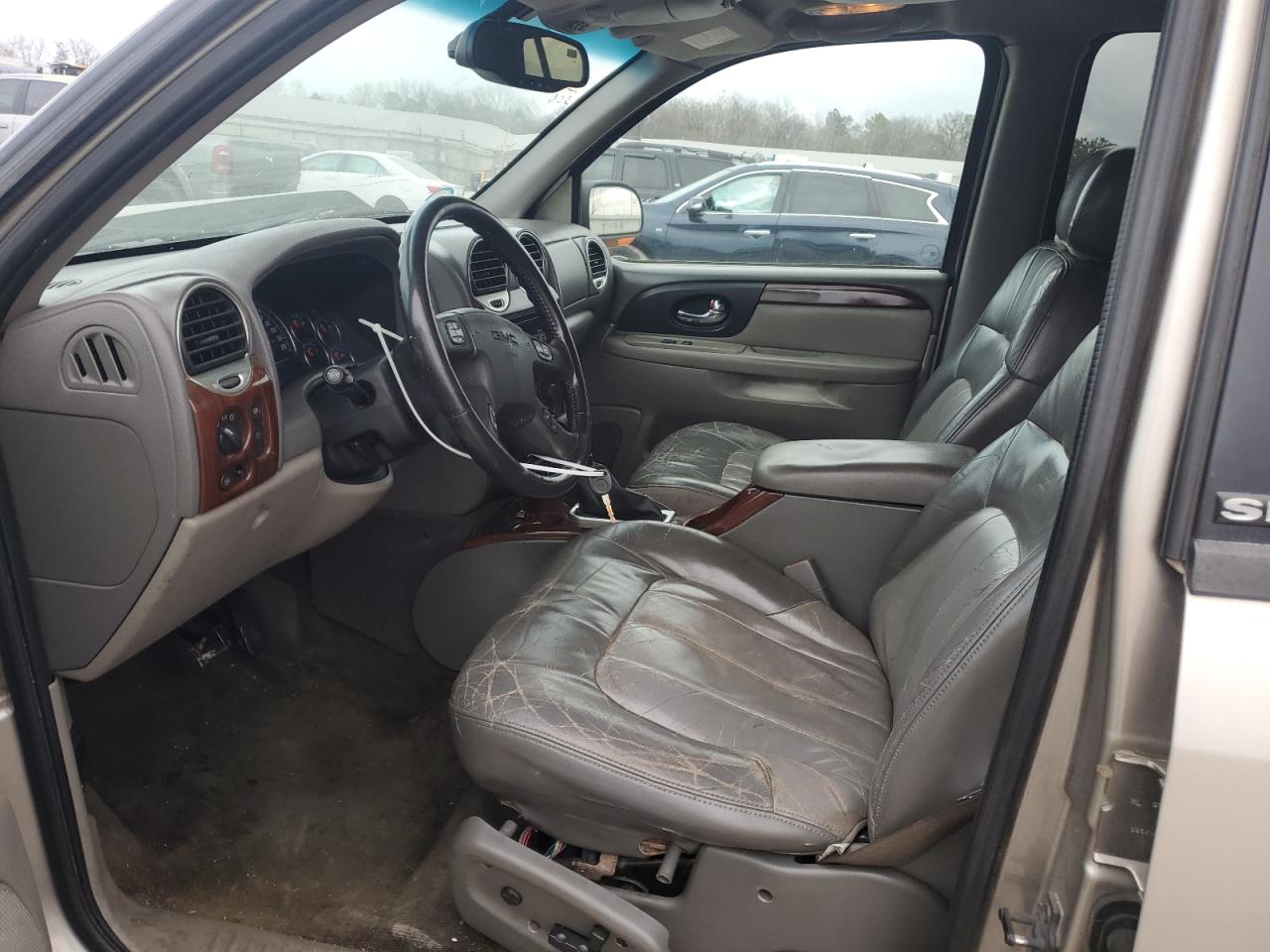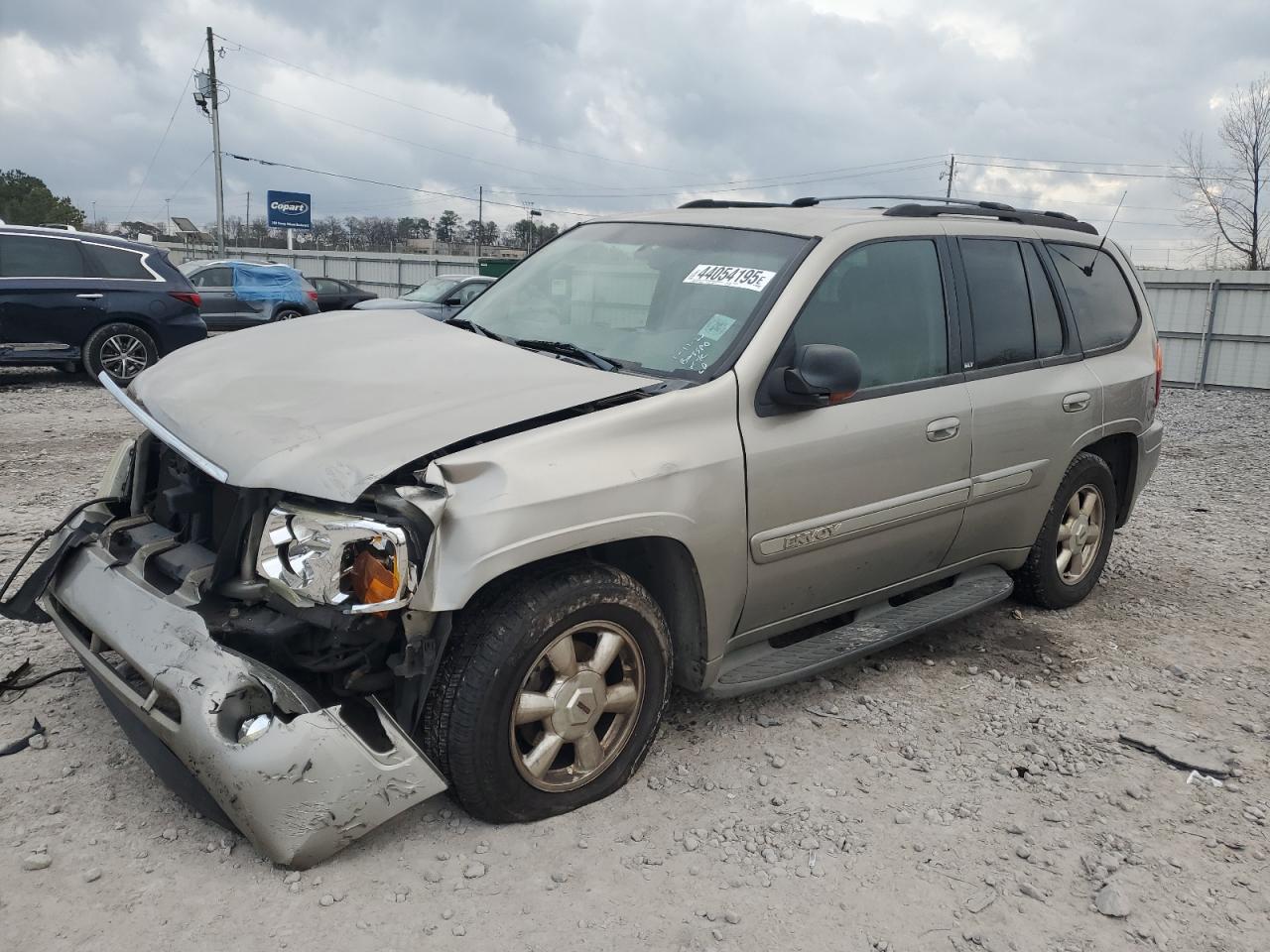 FairThe 2002 GMC Envoy exhibits significant front-end damage, primarily affecting the body panels and exterior components. The vehicle's tan paint shows signs of wear, and the overall condition reflects its age and use. The interior presents moderate damage, especially to the seats.