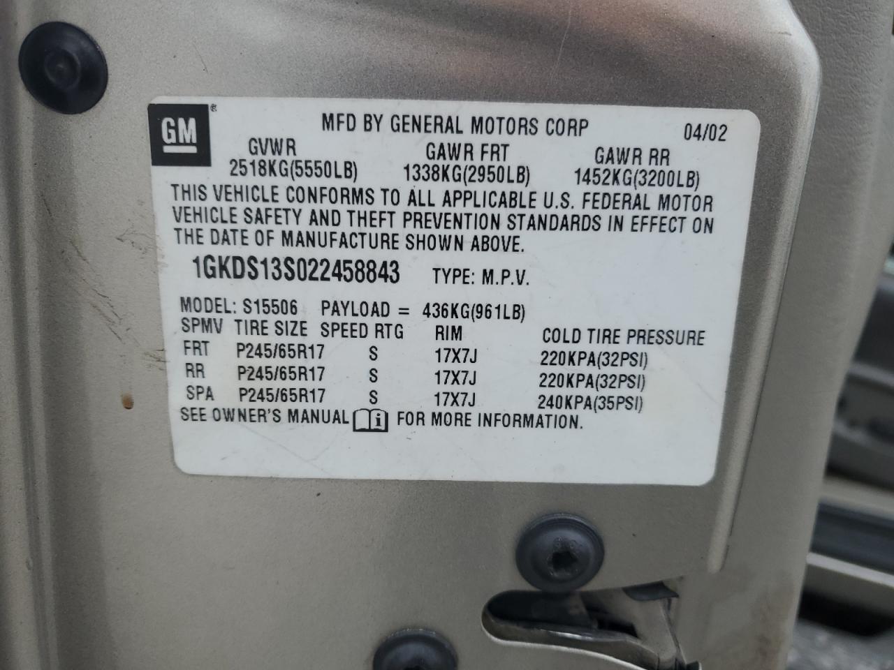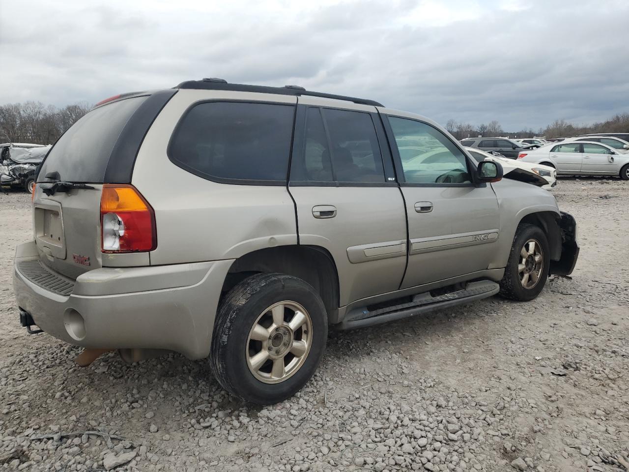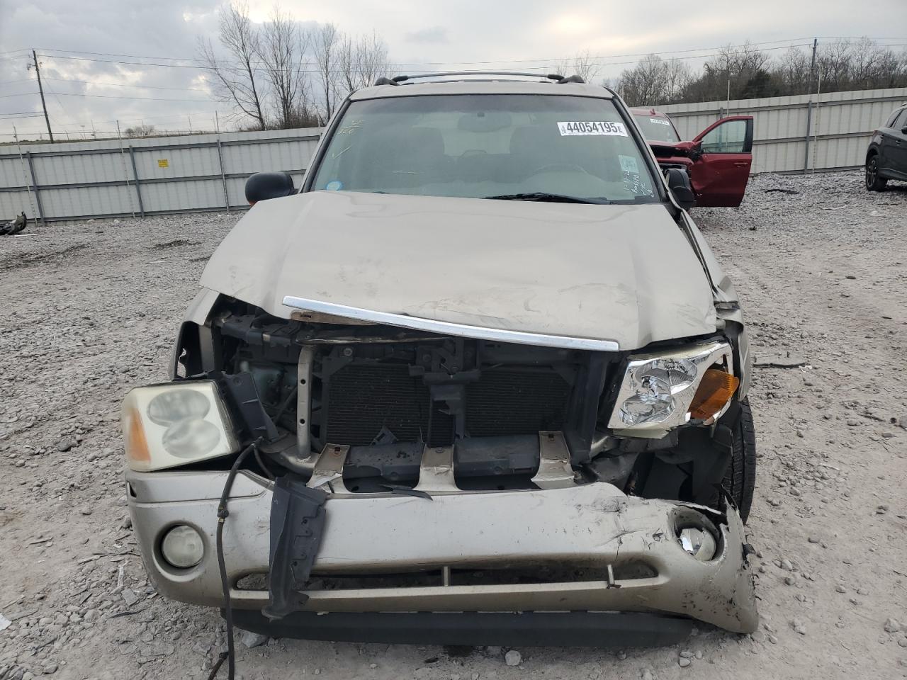 FairThe 2002 GMC Envoy exhibits significant front-end damage, primarily affecting the body panels and exterior components. The vehicle's tan paint shows signs of wear, and the overall condition reflects its age and use. The interior presents moderate damage, especially to the seats.