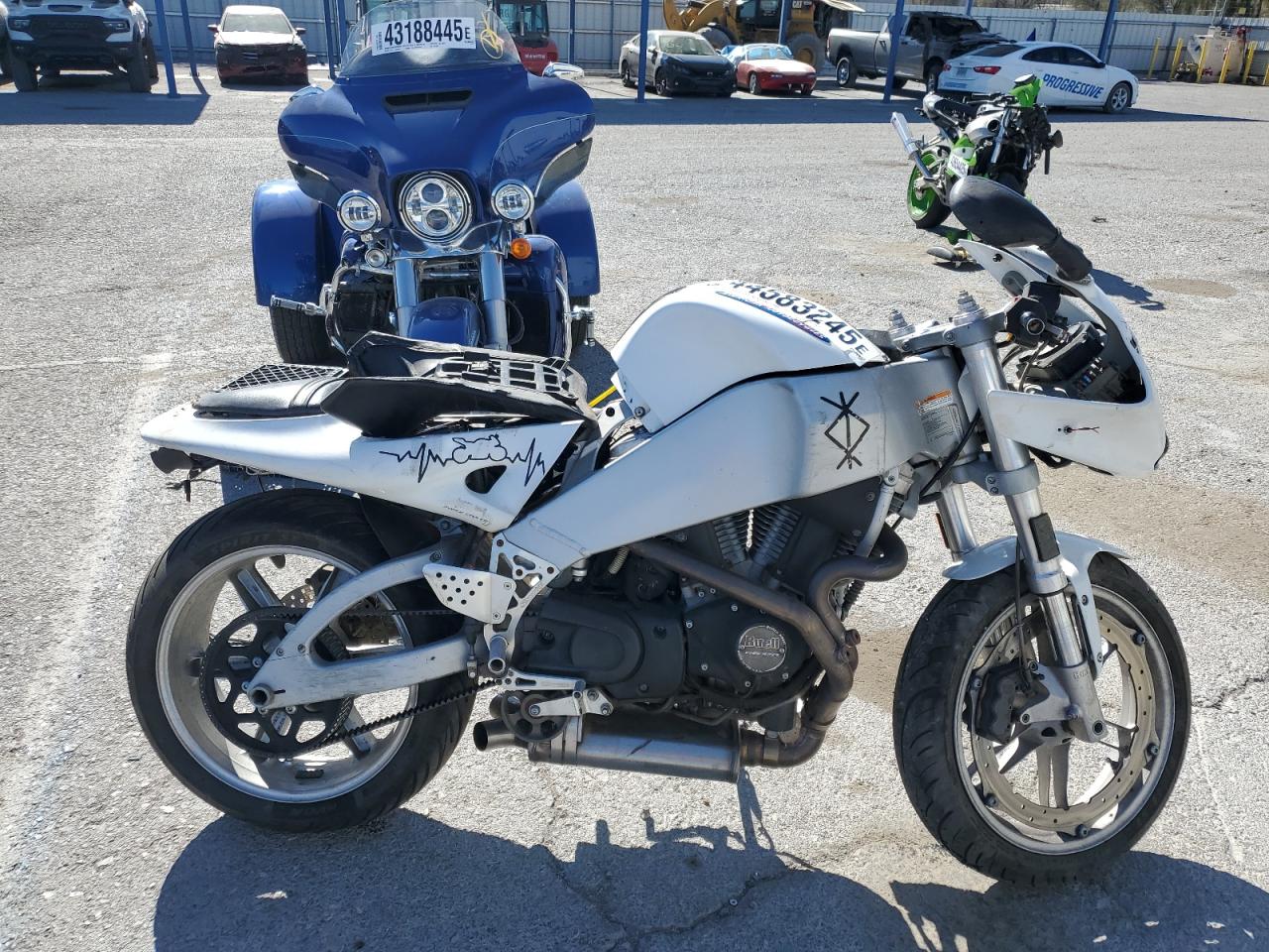 FairThe white 2003 Buell Firebolt X has sustained damage throughout the body. The fairing and body panels show significant damage. The mechanical components appear to be intact based on the provided images. The interior condition is fair, the interior has visible damage. The lights have visible damage. The wheels have damage. No airbags are visible.