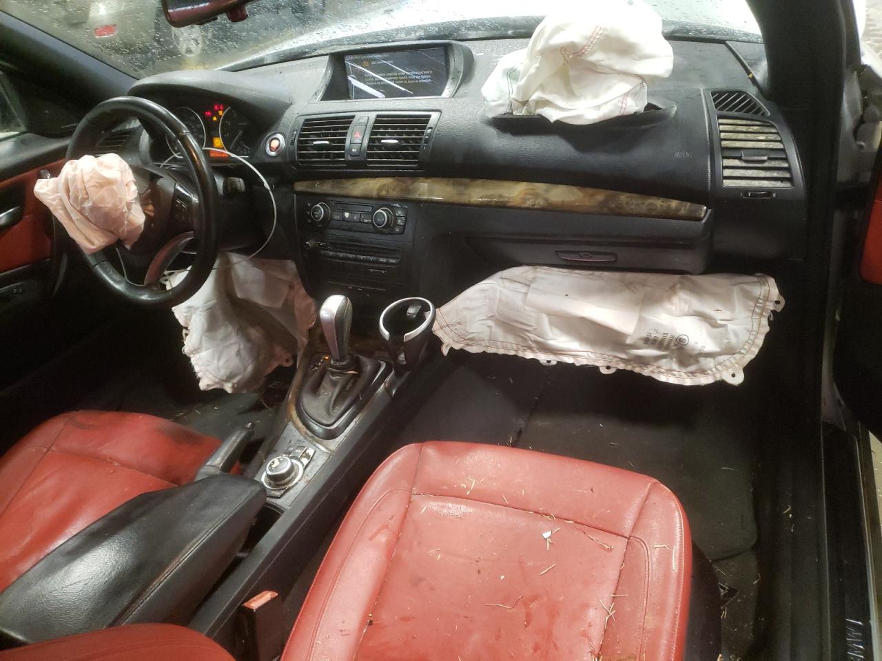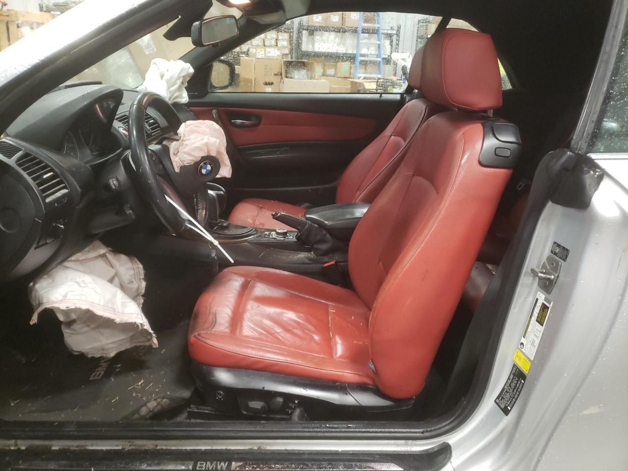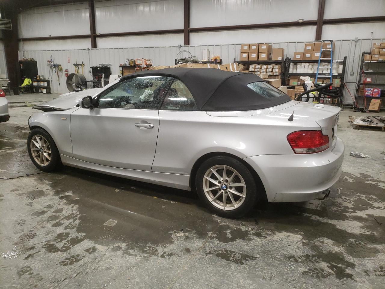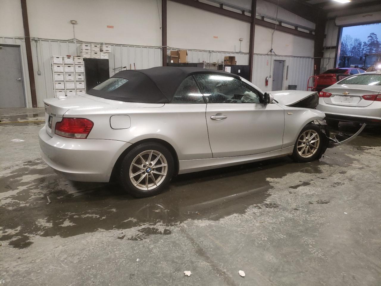 PoorThe silver 2011 BMW 128i convertible has sustained significant damage. The front end is heavily damaged, with the front bumper, hood, and fenders showing major impact. The airbags have deployed. The interior also exhibits substantial damage, with deployed airbags and visible damage. The vehicle is likely not drivable in its current state. The wheels appear to be intact, and the lights and glasses are likely damaged. The car's engine is damaged.