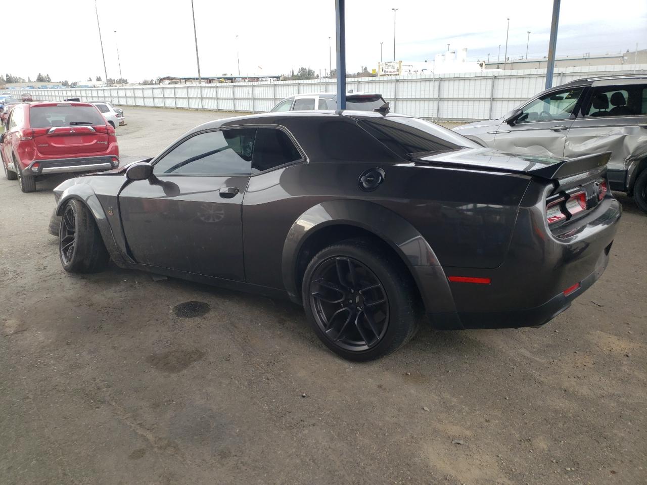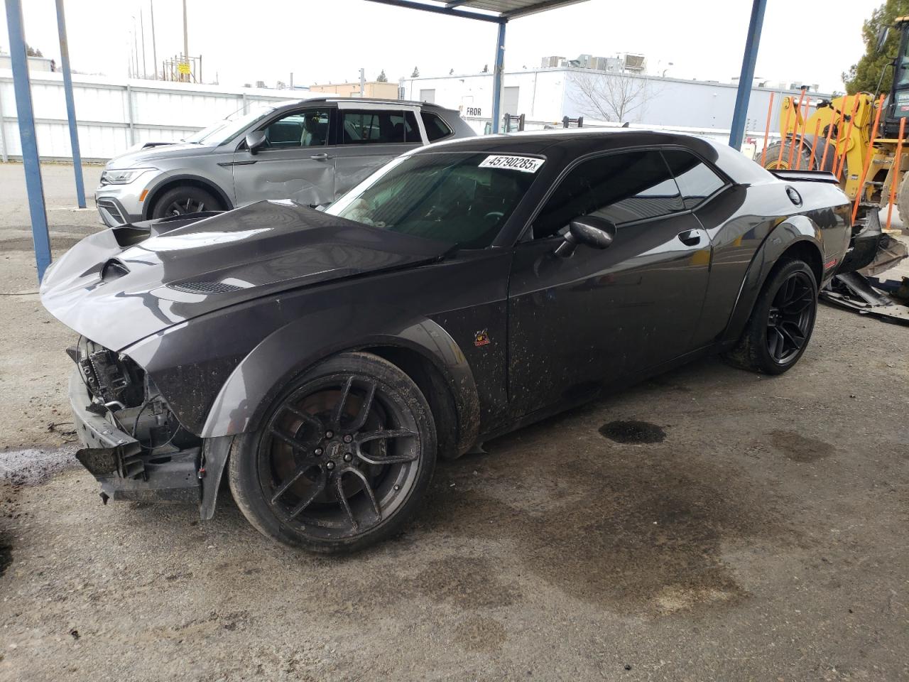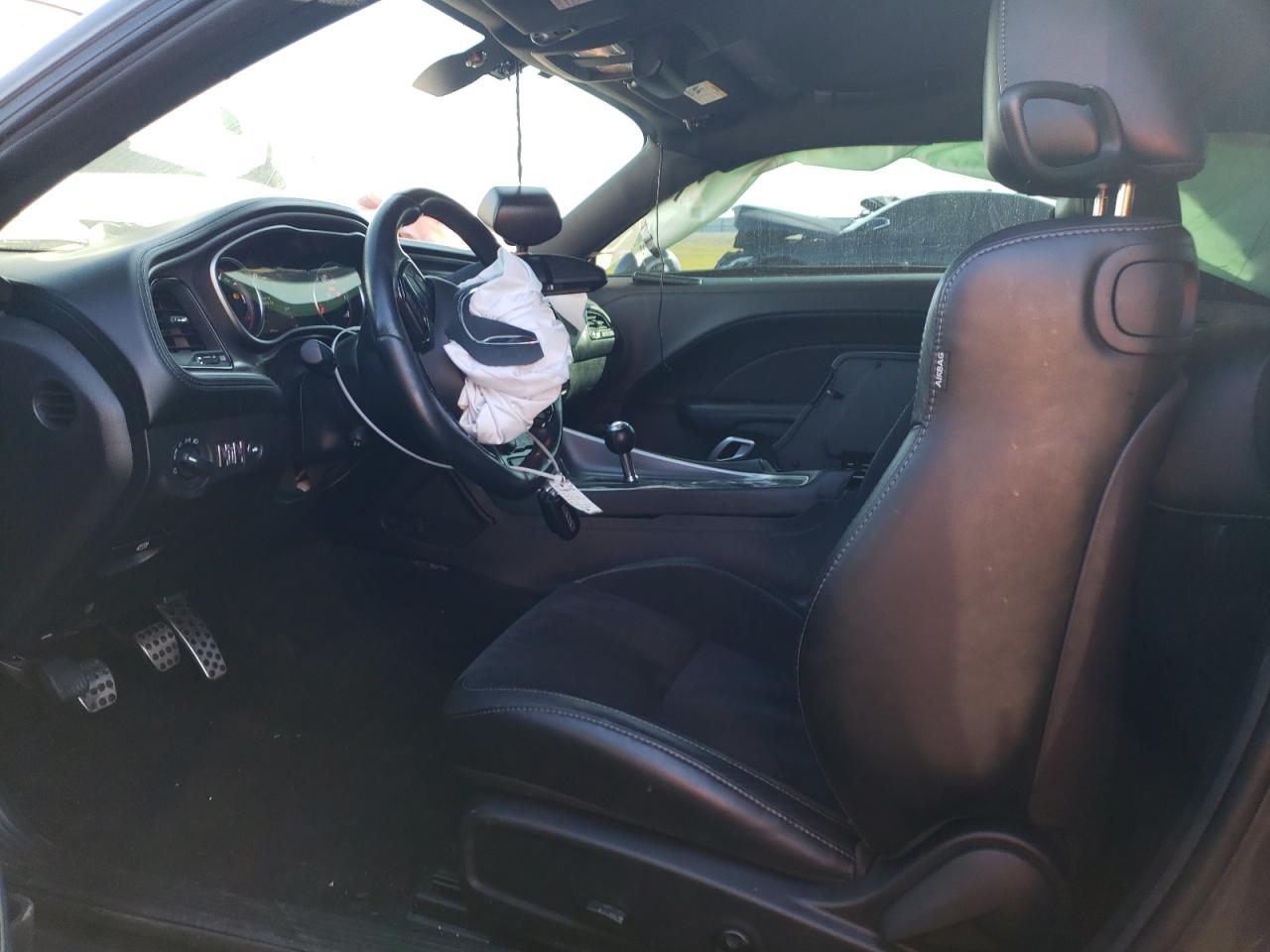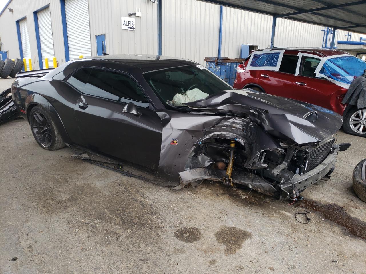 PoorThe 2021 Dodge Challenger presents with extensive damage. The primary damage is widespread across the body, with secondary damage to the undercarriage. The car is gray. The vehicle starts. The front end is severely damaged, with significant impact to the body panels, lights, and front wheels. The rear of the vehicle also shows damage. The interior shows airbag deployment and other damages.