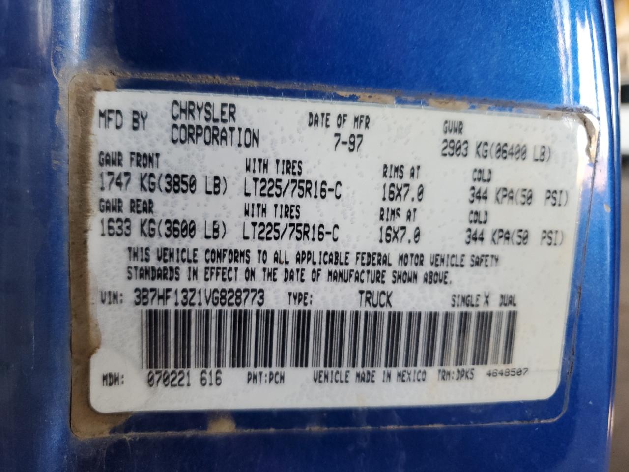 3B7HF13Z1VG828773Final Bid